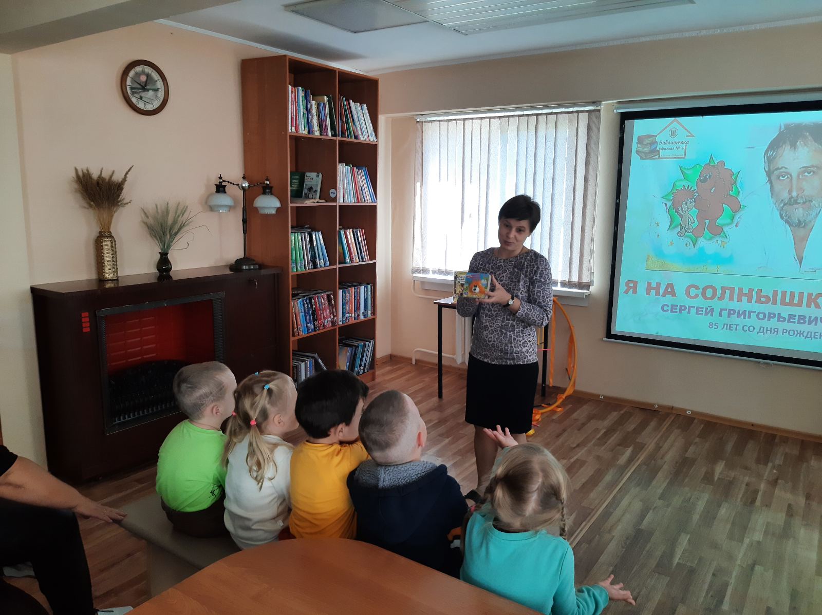 Для воспитанников детского сада №5 в библиотеке-филиале №6 прошла беседа-викторина «Я на солнышке лежу», посвящённая юбилею писателя. Ребята познакомились с биографией Сергея Григорьевича Козлова, вспомнили, что по его произведениям созданы мультипликационные фильмы. Девчонки и мальчишки с удовольствием посмотрели фрагменты мультфильмов, а затем выполняли задания: отвечали на вопросы, пели песенки, играли с лучиками солнышка, собирали пазлы по сюжету мультфильмов, выполняли задание по книге «Азбука Львёнка и Черепахи». В конце мероприятия ребятишки рассматривали иллюстрации в книгах и делились впечатлениями!