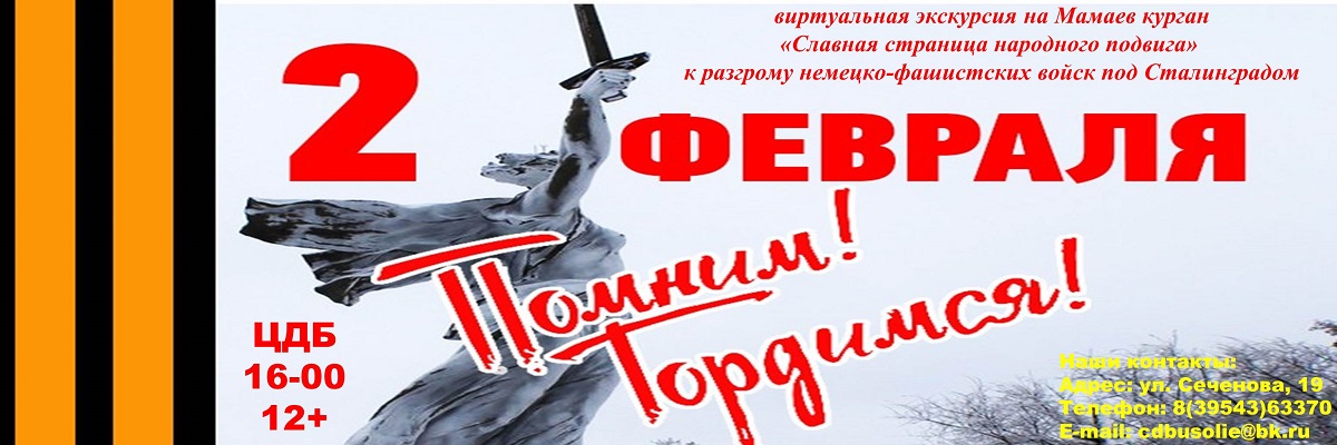 Мы не в силах изменить прошлое, но в наших силах сохранить память о нём. С целью сохранения памяти и воспитания патриотизма у детей в Центральной детской библиотеке пройдет мероприятие, посвященное одному из трагических событий Великой Отечественной войны – Сталинградской битве. Читать далее