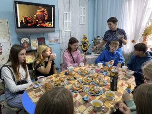 Самовар у нас — не только символ семьи, мира и благополучия, но и символ гостеприимства. Ребята познакомились с чайными церемониями разных народов, но не обошлось и без закрепления правил этикета за столом. А еще вкусно прошла дегустация разных сортов чая.