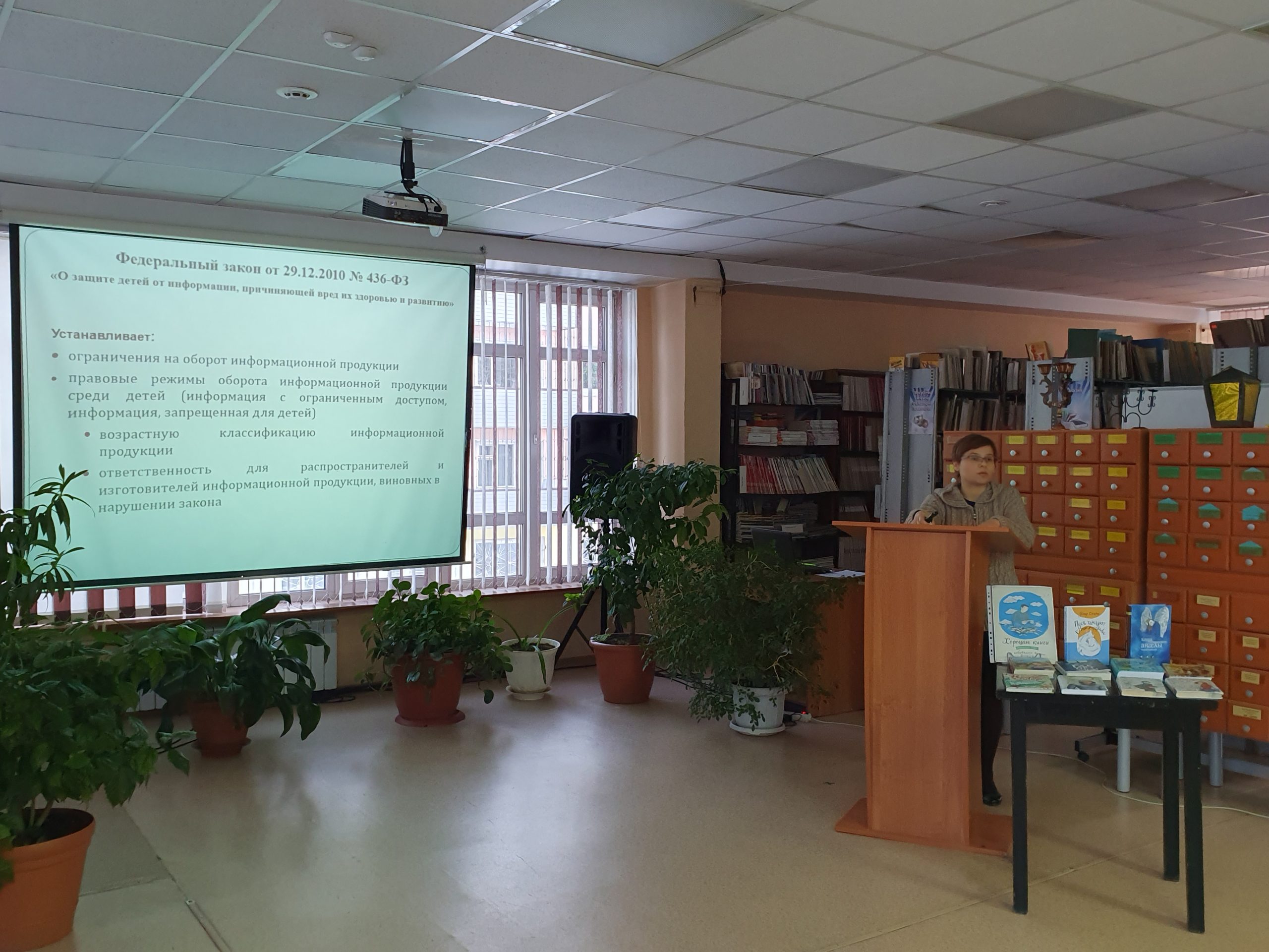О вопросах правоприменения Федерального закона №436-ФЗ «О защите детей от информации, причиняющей вред их здоровью и развитию», в библиотеках, обслуживающих молодежь, рассказала Татьяна Николаевна Кичигина, заведующий отделом библиографии и краеведения.