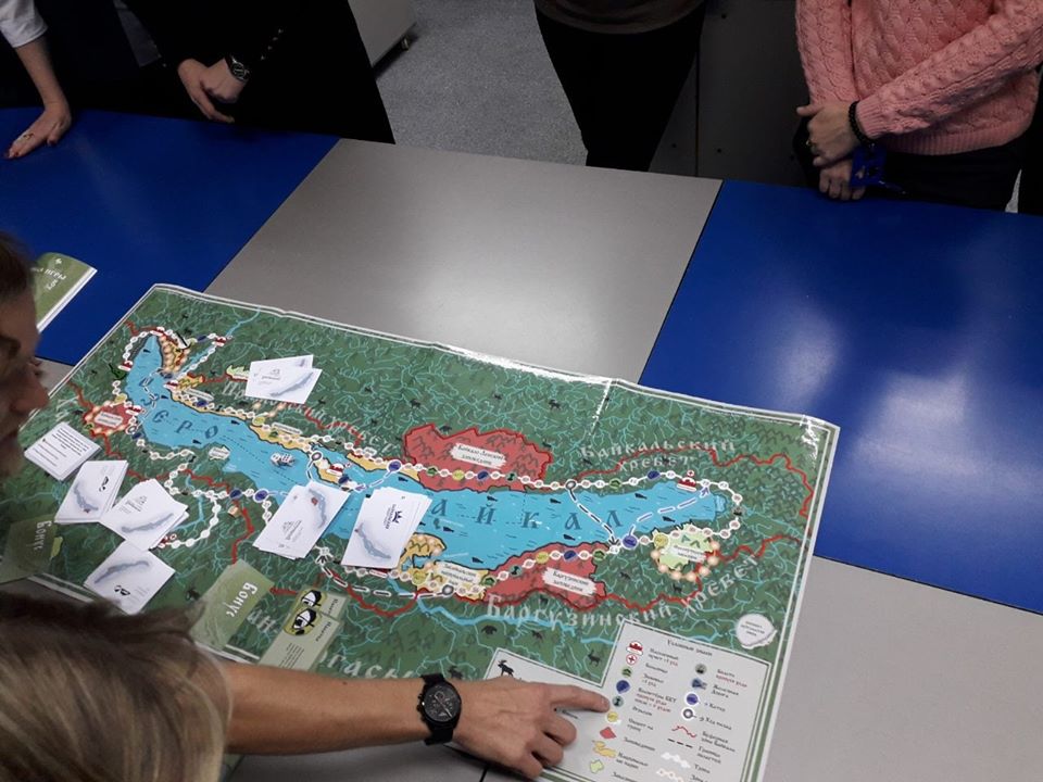 Оксана Анатольевна познакомила коллег с интерактивными настольными играми «Фермология», «Иркология», «Сортируй», а также игрой-ходилкой «Увлекательная экспедиция вокруг Байкала», которая является совместным проектом иркутской областной детской библиотеки им. Марка Сергеева и иркутской организации «Ассоциация «Защитим Байкал вместе».