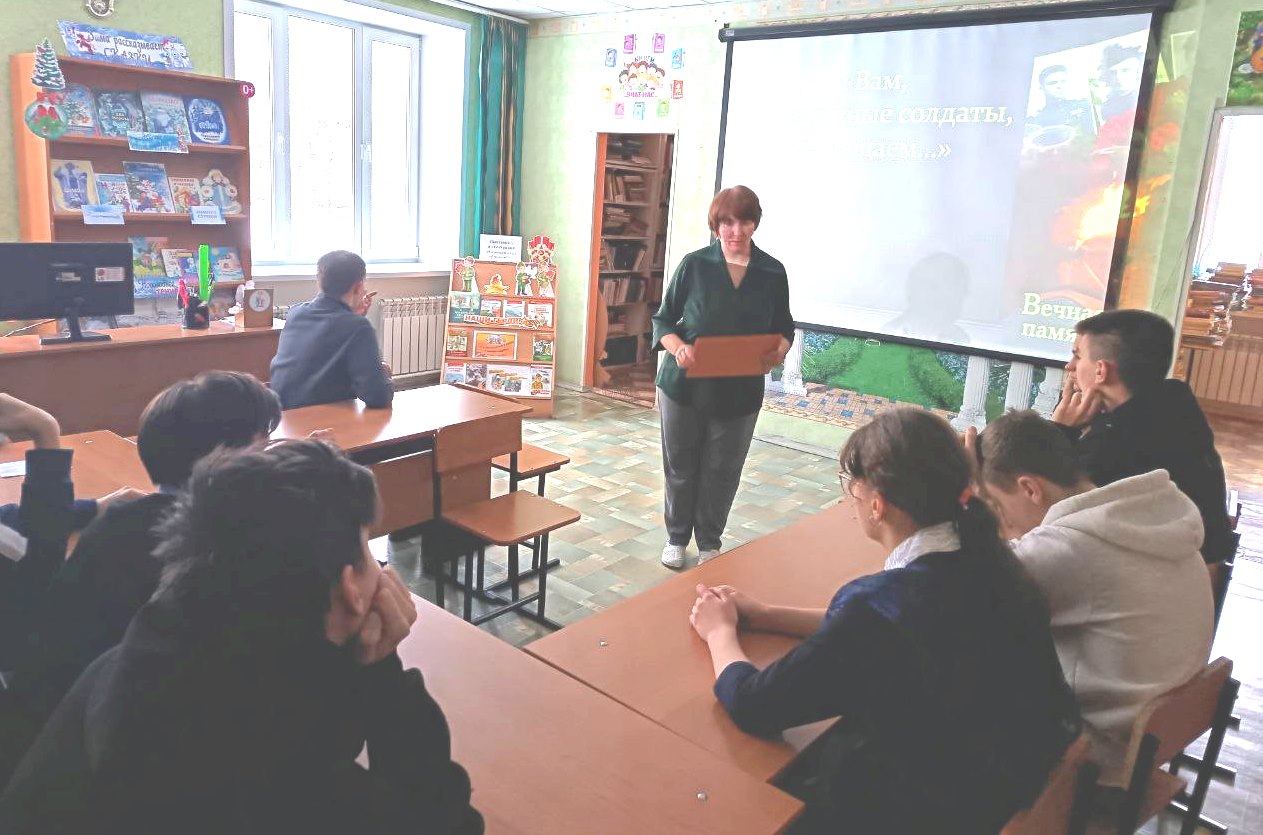 3 декабря 2025 года в детской библиотеке-филиале №7 прошел час скорби, посвященный Дню Неизвестного Солдата. На встречу пришли ученики 9‑х классов из СКШ № 1. Задача мероприятия — познакомить ребят с историей памятной даты и поговорить о том, почему важно помнить о тех, кто защищал нашу страну.