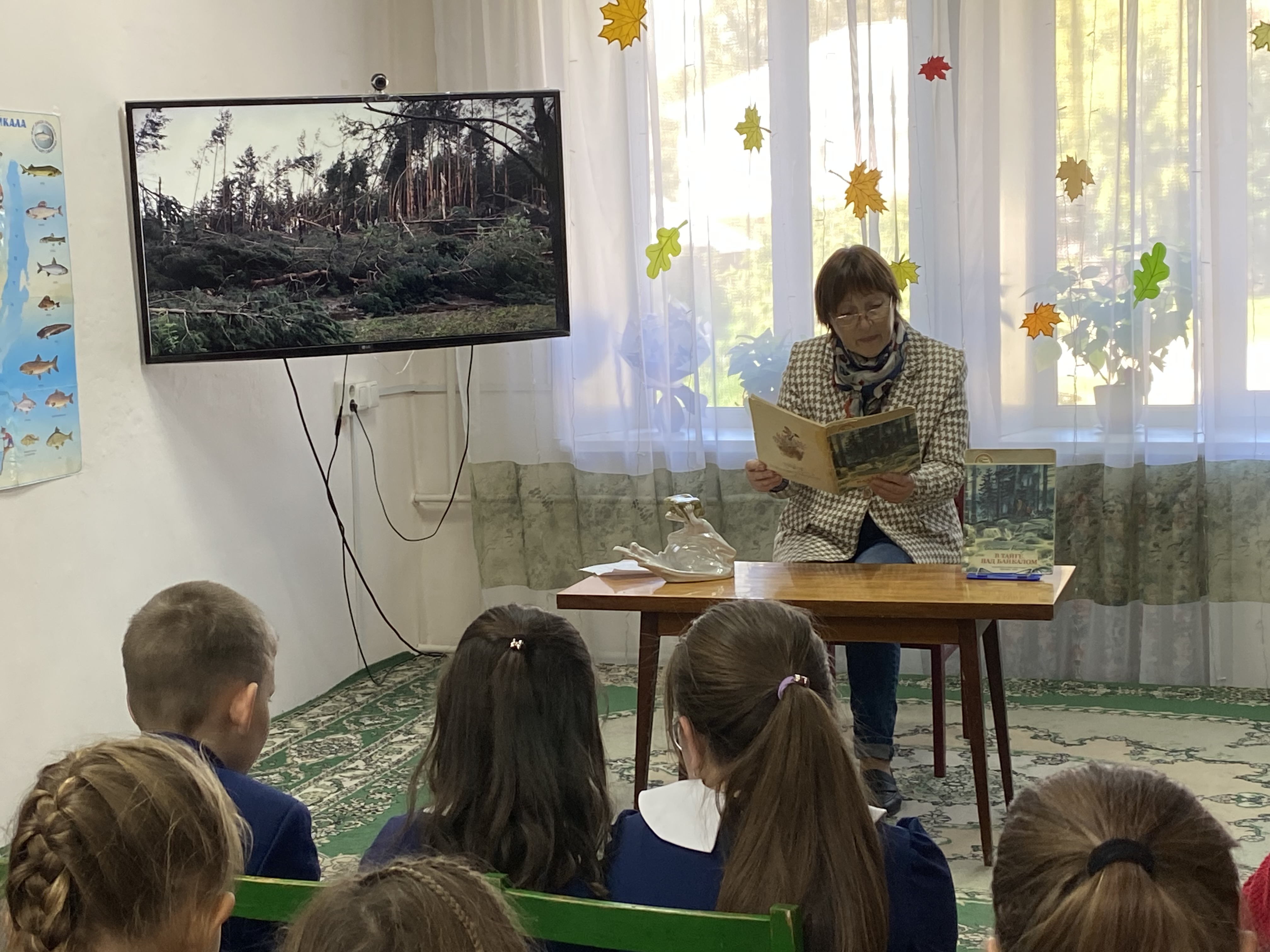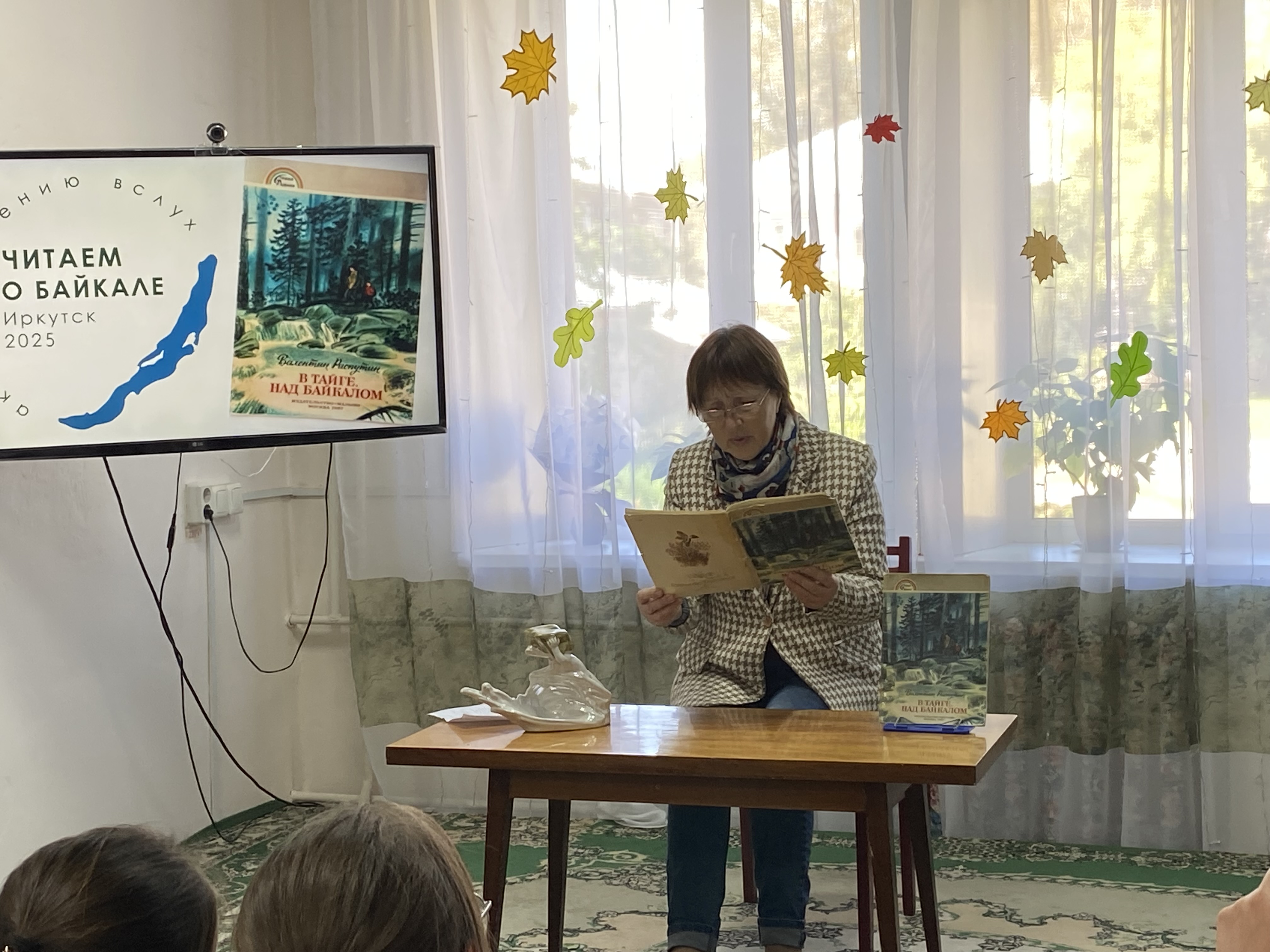 Для школьников гимназии №9 художественный руководитель Дома культуры «Мир» Н.В. Драбик читала рассказ В. Распутина «В тайге над Байкалом».