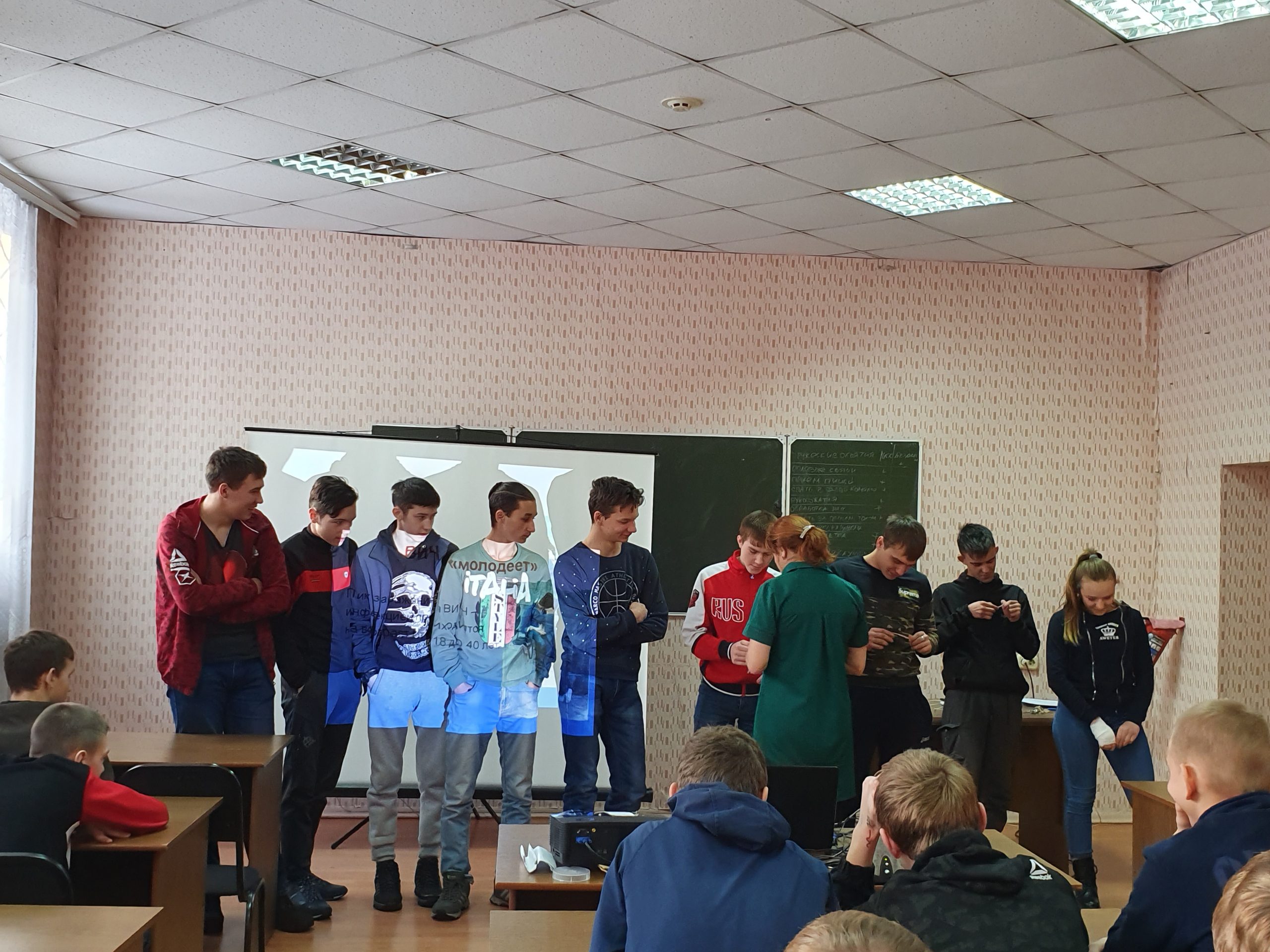 4 декабря для студентов усольского индустриального техникума сотрудники зала художественной литературы центральной библиотеки провели час вопросов и ответов «Что мы знаем о СПИДе?» с участием Светланы Никандровны Сластеновой, исполнителя региональной системы по профилактике незаконного потребления наркотических средств и психотропных веществ и педагога-психолога Ирины Тадеушевны Навойчик.
