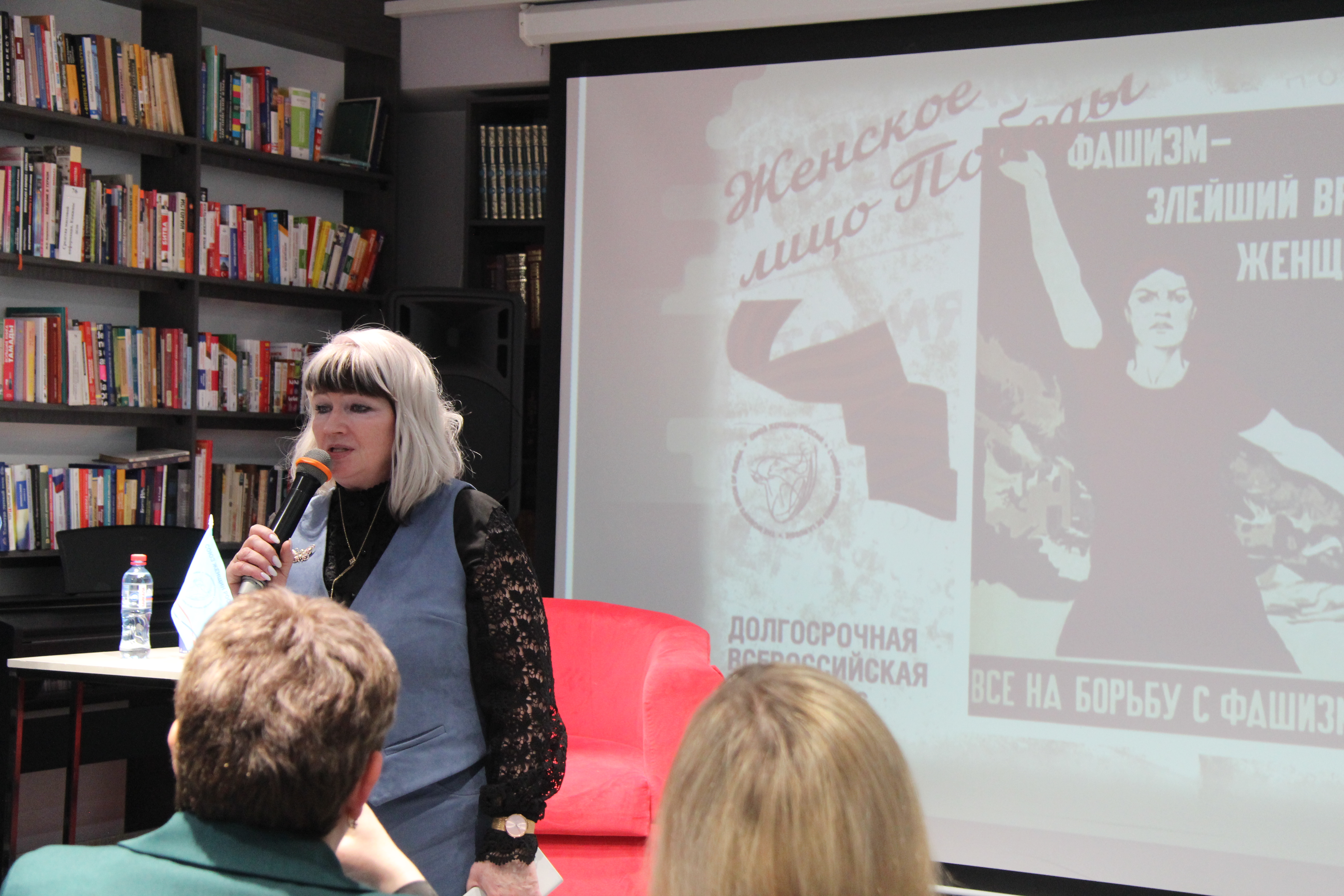 Женщины в русской истории… В чем их особенность? Федор Михайлович Достоевский писал: «Русская женщина смело пойдет за тем, во что верит». Это подтверждают многие русские женщины, жившие в различные эпохи, от княгини Ольги до героев Советского Союза, воевавших в годы ВОВ, тружеников тыла, ковавших победу в тылу, героев социалистического труда строивших светлое будущее нашей страны и героев СВО. Председатель городского совета женщин, координатор общественной организации волонтёров «Золотые руки Ангела», член Общественной палаты города Топольницкая Инга Владимировна представила выставку портретов усольчанок, участниц Великой Отечественной войны «Женское лицо Победы». Выставку прекрасно дополнили книги из краеведческого фонда библиотеки: «Фронтовые подруги», «Усольские журавушки», «Герои земли Усольской».
