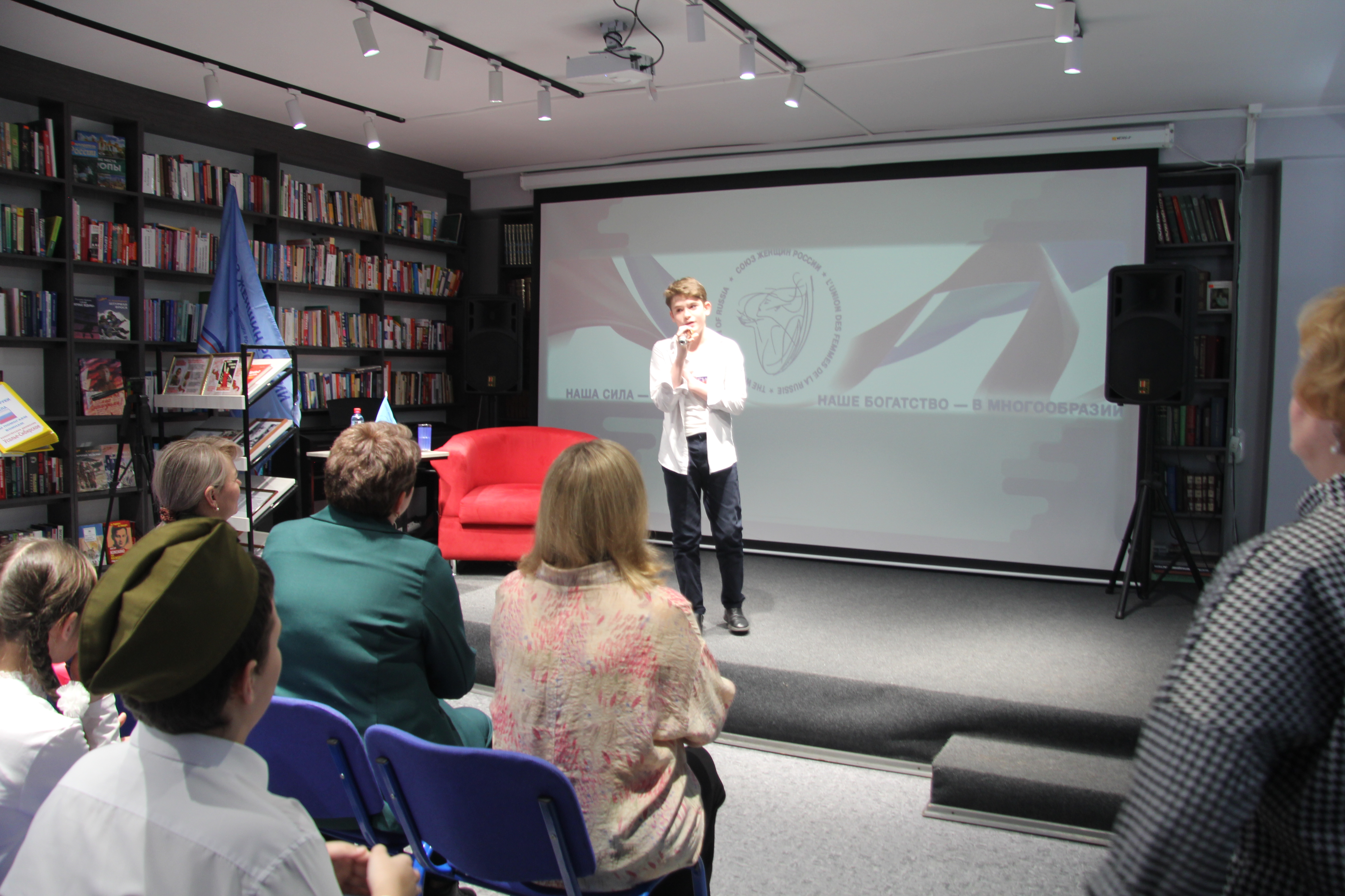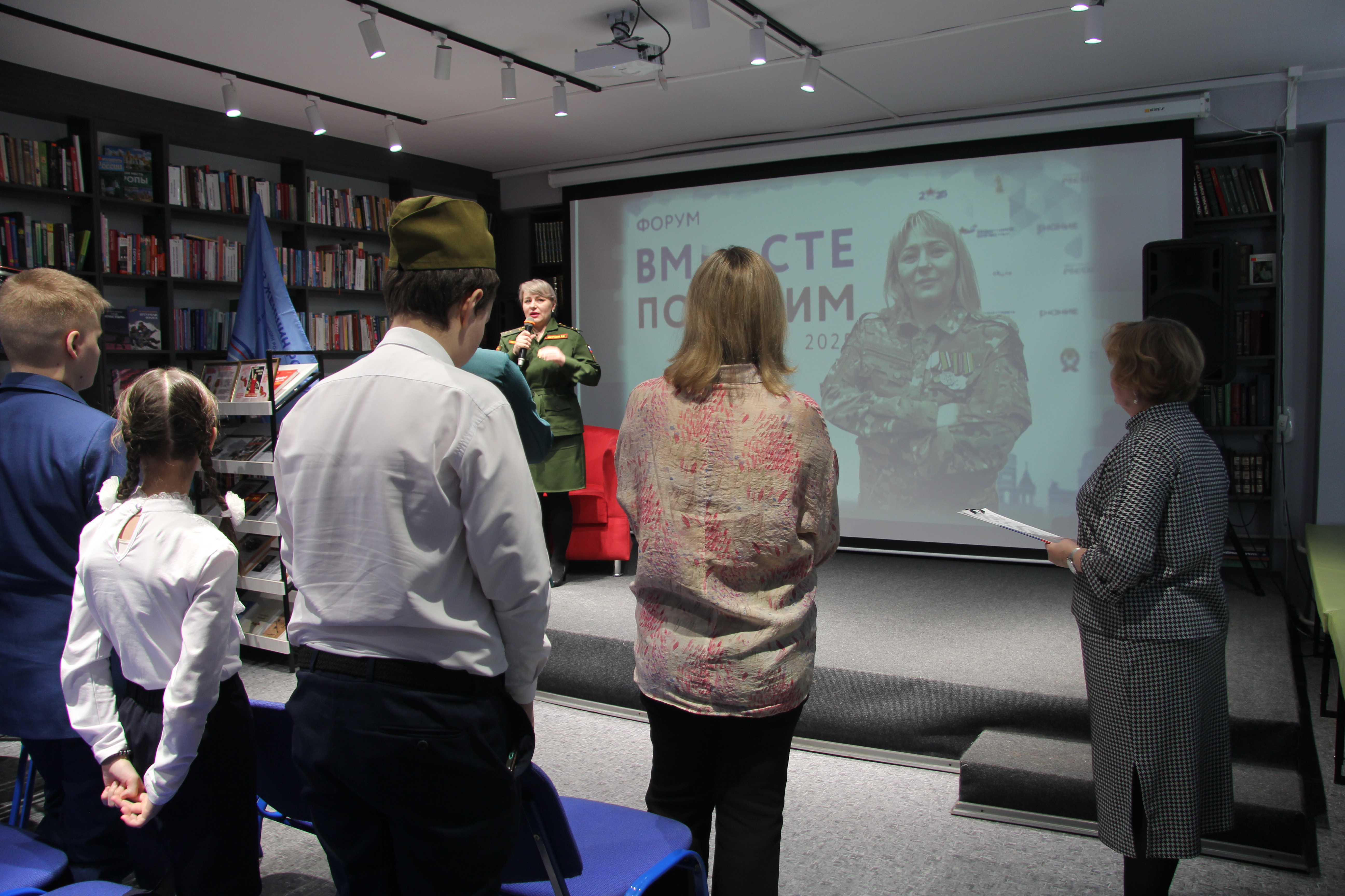 Главным гостем мероприятия стала Татьяна Михайловна Вострецова-участница СВО, легендарная «Оса». Татьяна Михайловна рассказала о своих фронтовых буднях, ответила на вопросы участников встречи. Это был самый трогательный момент. Прикоснуться к живой легенде, услышать из первых уст о страшных событиях сегодняшнего дня было очень волнительно. Несколько раз ее рассказ прерывался аплодисментами. Её история — это история мужества, хладнокровия и безграничной преданности Родине, и долгу. Встреча с ней ещё раз доказала, что русская женщина может все. И что в самое трудное время она вновь встанет плечом к плечу наравне с мужчинами. В ней таится огромная сила.