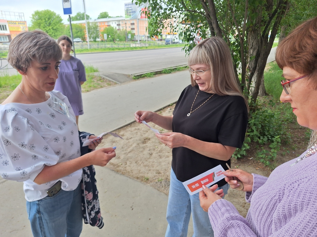 Сотрудники библиотеки-филиала №5 сделали акцент на краеведческой составляющей. Они подготовили специальные вопросы о вкладе усольчан в Победу, включая вопросы о Героях Советского Союза Уватове А.Н. и Сычеве И.И., полных кавалерах ордена Славы Аверьянове И.Л. и Маркове Н.И. В проведении акции помогали ученицы 9 «Б» класса школы №12 Дубровина Вероника и Круглова Александра, которые не только задавали вопросы прохожим, но и помогали рассказывать о представителях атомной энергетики, о важных датах Великой Отечественной войны и ее героях.