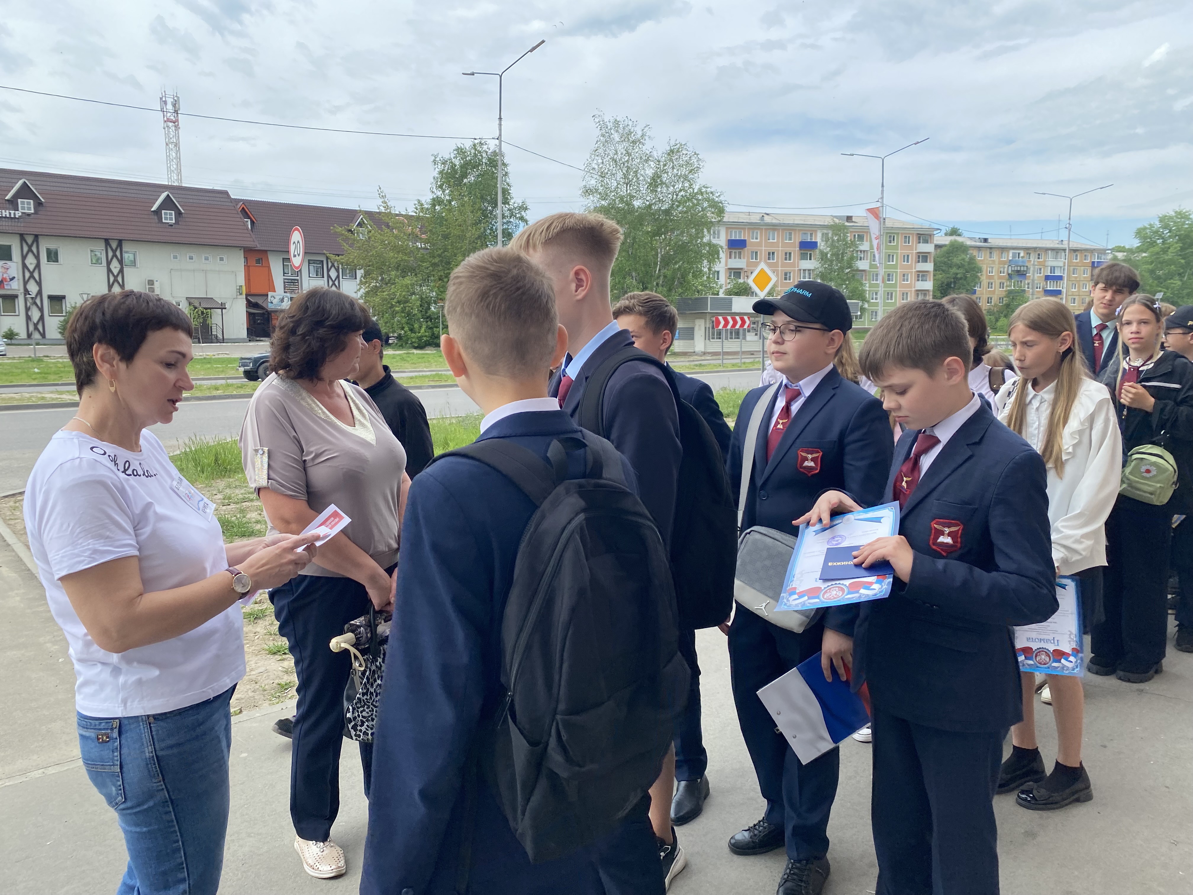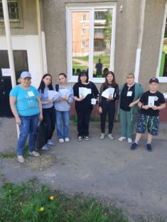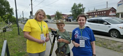 Сотрудники детской библиотеки-филиала №7 и волонтеры воспитатель ГПД Анастасия Александровна Чернышева и ученик средней школы №6 Артем Чернышев не только проверяли знания горожан о Великой Отечественной войне, но и предлагали вспомнить художественные произведения военной тематики. Их маршрут пролегал по Верхнему парку и дворовым площадкам, что позволило охватить как взрослую аудиторию, так и семейные пары с детьми. В качестве праздничных сувениров все участники получили книжные закладки и книгу А.А. Разгуляева «За землю русскую».