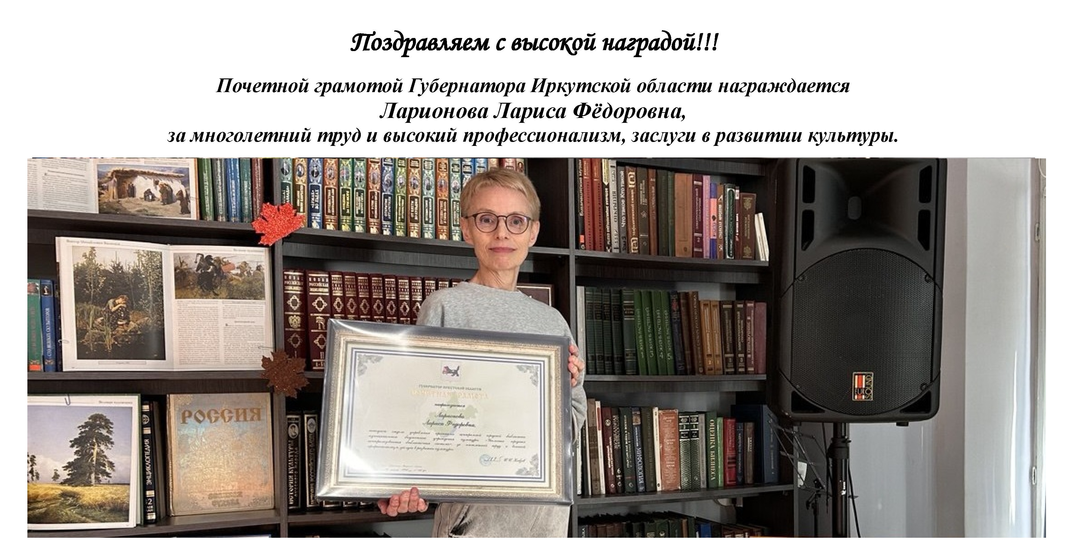 Поздравляем с высокой наградой