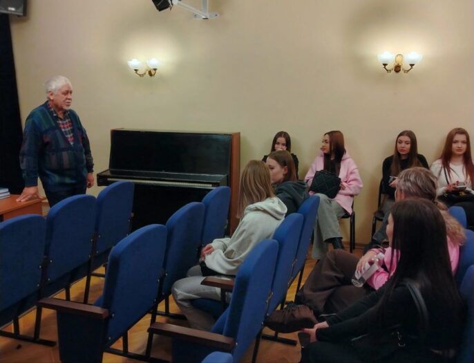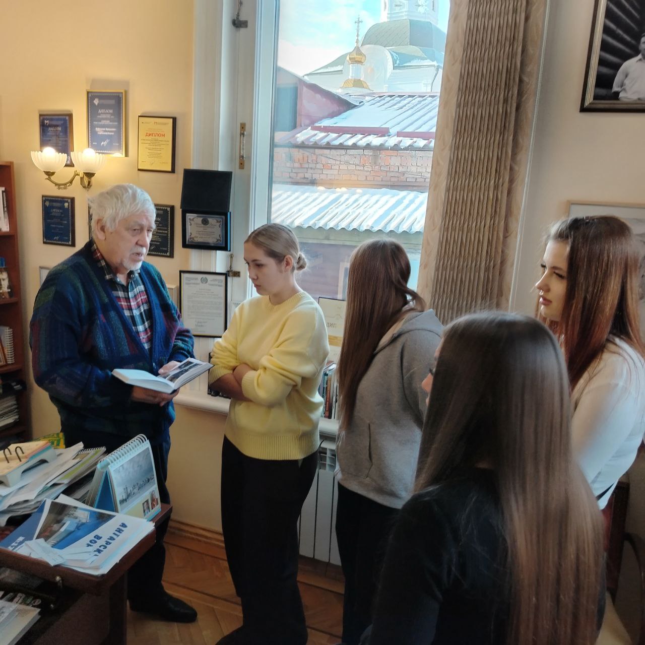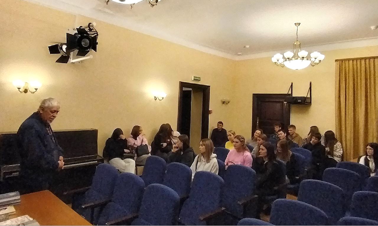 Завершилась экскурсия творческой встречей с известным иркутским писателем Владимиром Петровичем Скифом, который рассказал о себе, поделился своим опытом, стихами и ответил на вопросы студентов.