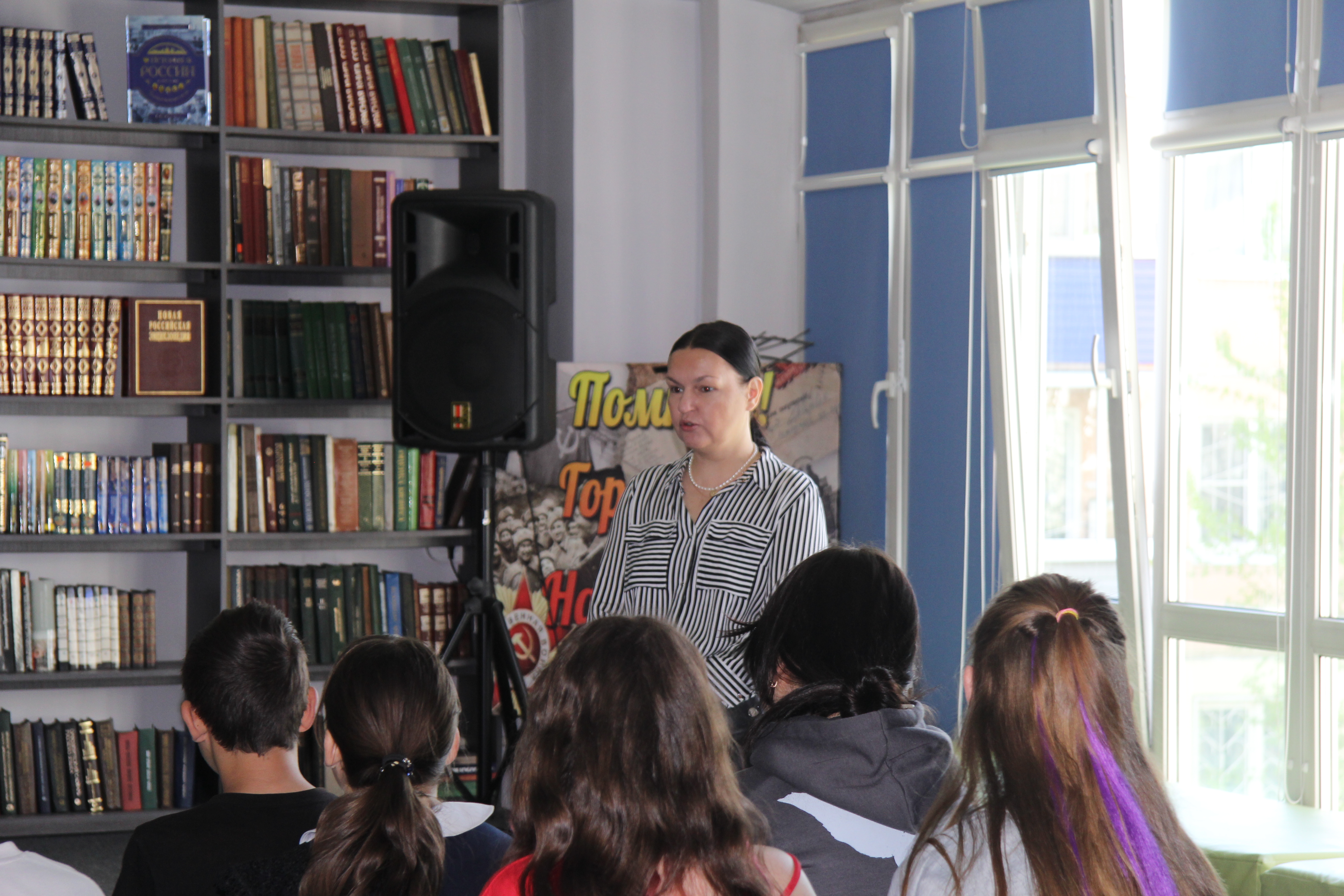К 80-летию Великой Победы в Центральной городской библиотеке для учеников СОШ №15 и №17 состоялся краеведческий урок «Без срока давности», посвященный усольчанам, героически сражавшимся на фронте и работавшим в тылу в годы Великой Отечественной войны.