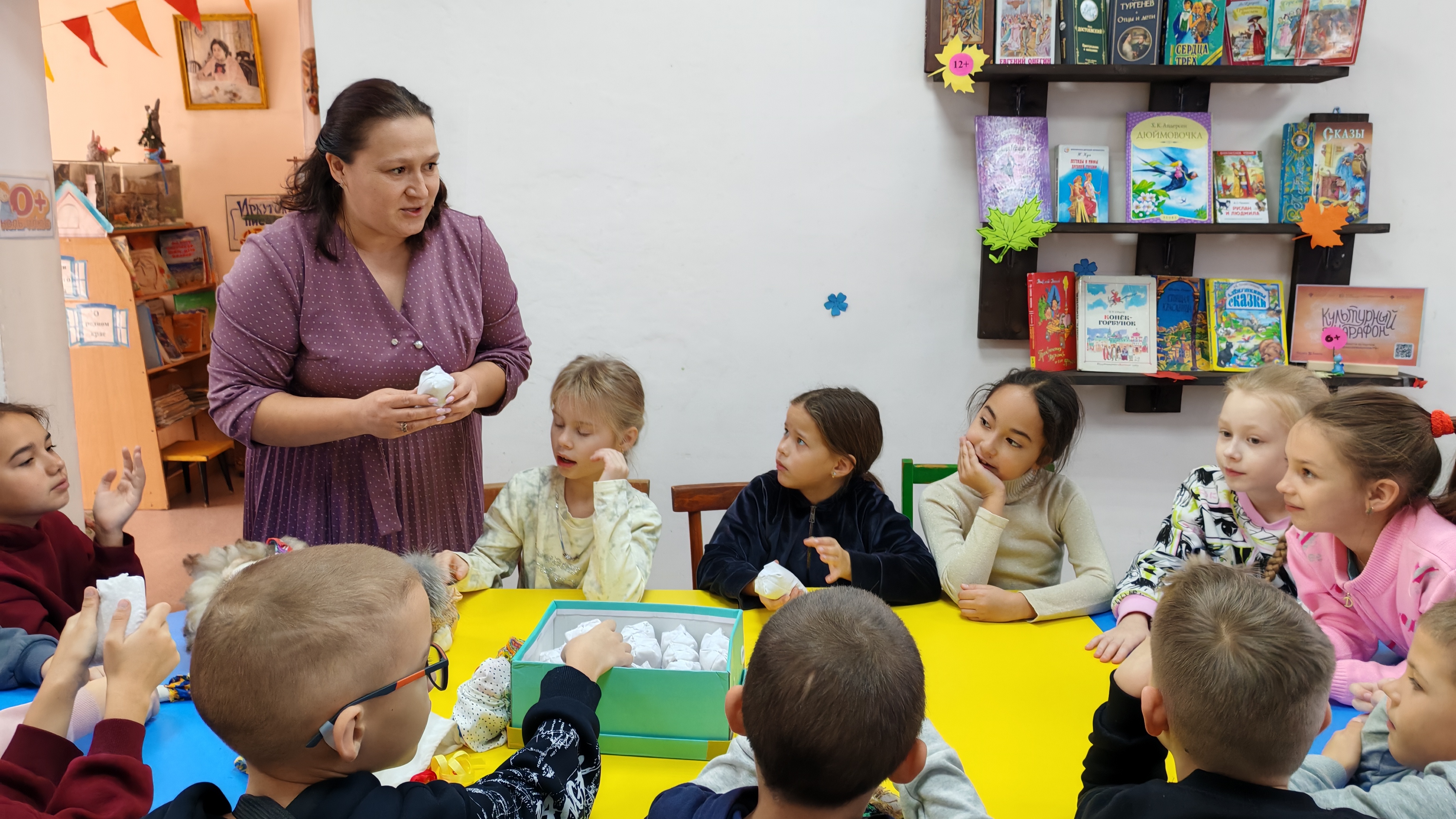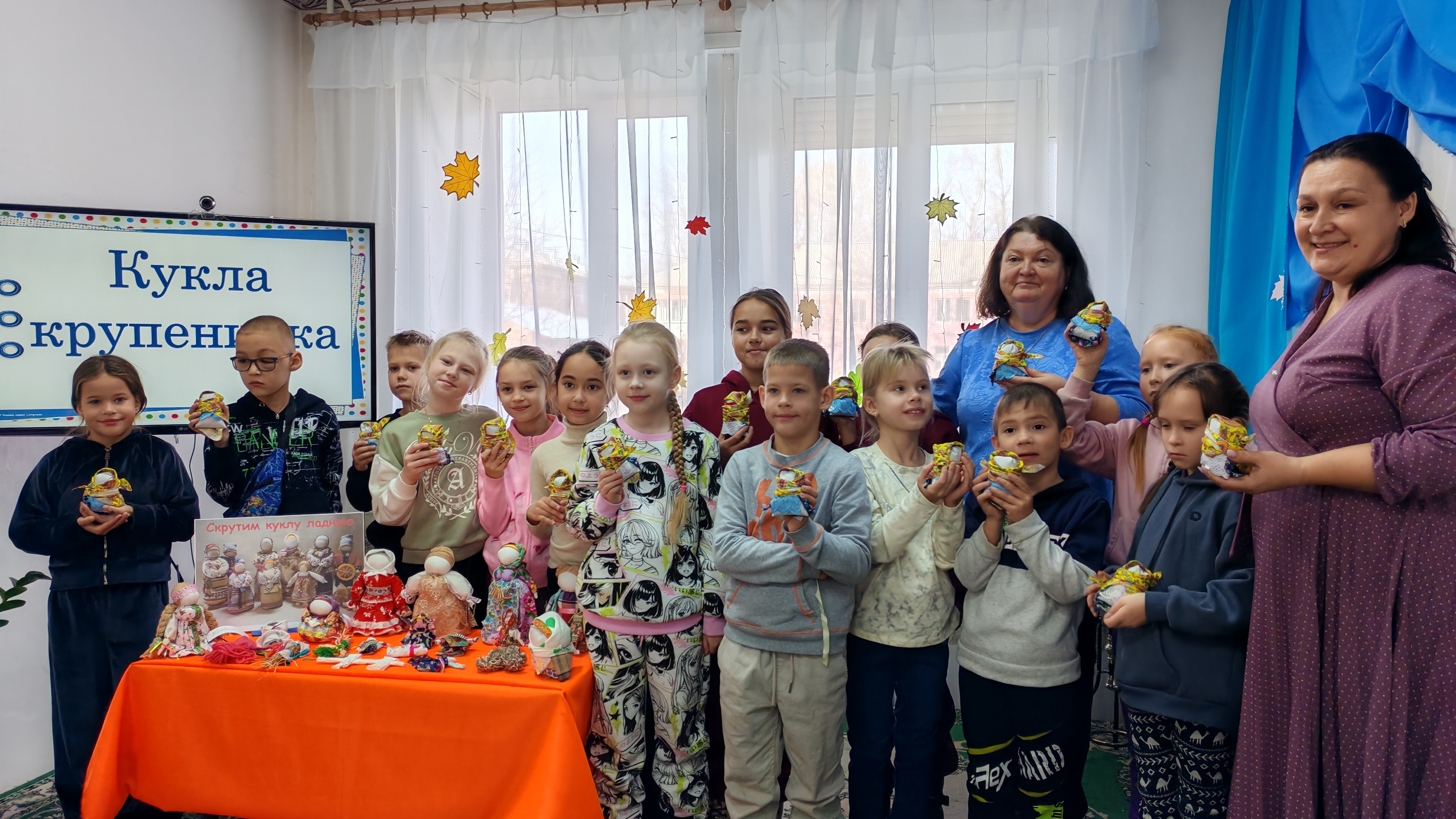 В рамках программы «Неформальные каникулы» для второклассников школы №2 прошел мастер-класс по изготовлению куклы-крупенички. Мастер-костюмер Дома культуры «Мир» Оксана Александровна Волкова показала ребятам, как создать народную куклу-зерновушку.
