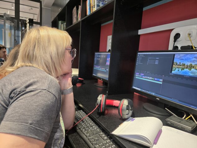Особый интерес вызвала практическая часть, посвященная непосредственному монтажу. Полина Александровна показала, как работать с дорожками, куда перетаскивать видео и аудио, как обрезать и разрезать видео на фрагменты, регулируя их длительность. Библиотекари пробовали отделять звуковую дорожку от видео, экспериментировали со скоростью воспроизведения, замедляя или ускоряя его для создания нужного эффекта. Не остались без внимания и творческие инструменты: участники учились добавлять к видео красивые заголовки и субтитры, делая свой контент более профессиональным и понятным для зрителя. В финале занятия каждый смог сохранить свой первый смонтированный ролик, получив на руки готовый результат.