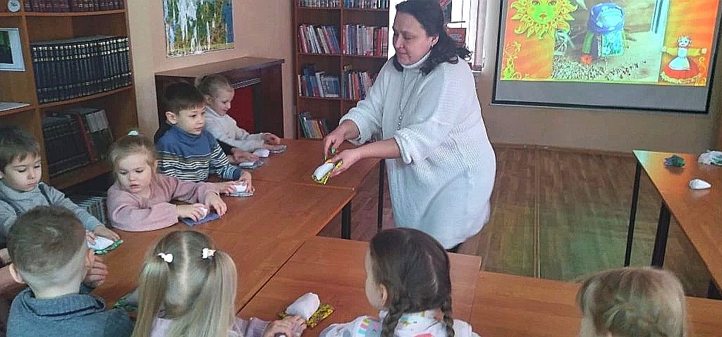В библиотеке‑филиале № 6 в рамках культурно‑просветительского проекта «Кукольные чудеса» прошел увлекательный мастер‑класс для воспитанников детского сада № 5. Юные участники под руководством специалистов библиотеки и Оксаны Александровны Волковой, костюмера дома культуры «Мир» города Усолье‑Сибирское, познакомились с традициями Масленицы и своими руками создали обрядовую куклу‑оберег «Масленица» — символ весны, тепла и благополучия.