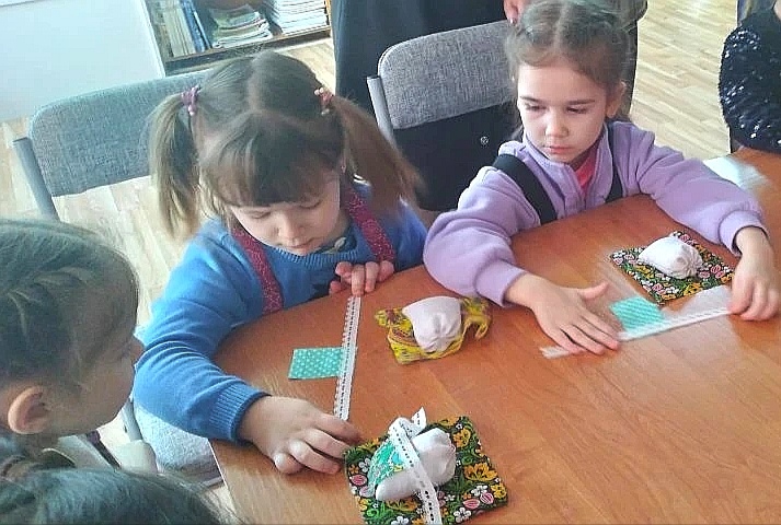 Мастер‑класс прошел в теплой, дружеской атмосфере. Дети почувствовали настоящую радость творчества: с увлечением подбирали ткани разных цветов и фактур, старательно завязывали узелки, украшали своих кукол.