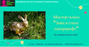 Ссылка на приобретение билета: https://www.culture.ru/events/2328444/master-klass-zayac-v-stile-paperkraft