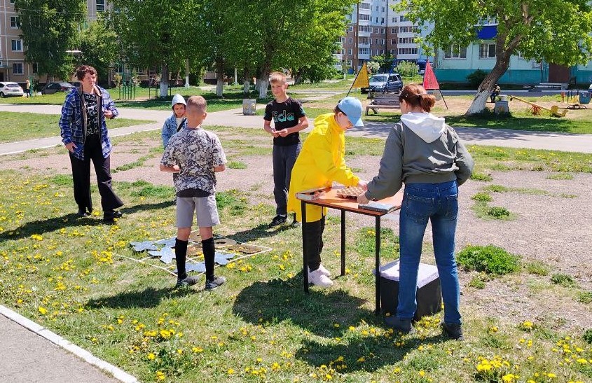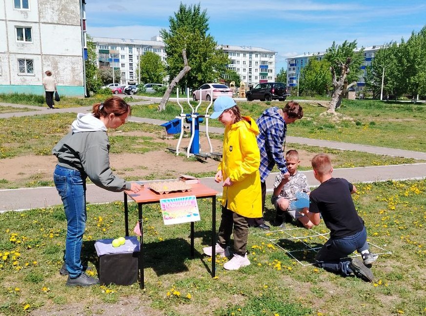 На близлежащей территории расположились «Площадка художников», «Загадочная площадка», «Игровая» и «Литературная». Под музыку рисовали мелом на асфальте на тему «Мое доброе лето», отгадывали загадки и отвечали на вопросы литературных викторин, знакомились с книгами, которые можно почитать летом, играли в «Крестики-нолики», «Веселый пинг-понг» и «Необычный футбол».