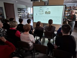 Далее состоялся час мужества «Нет в России семьи такой, где б не памятен был свой герой». Сотрудники библиотеки рассказали о начале войны и о подвигах усольчан – участников Великой Отечественной войны. Присутствующие поделились семейными историями о героизме своих родных: тех, кто сражался на фронте или ковал Победу в тылу в годы Великой Отечественной войны.