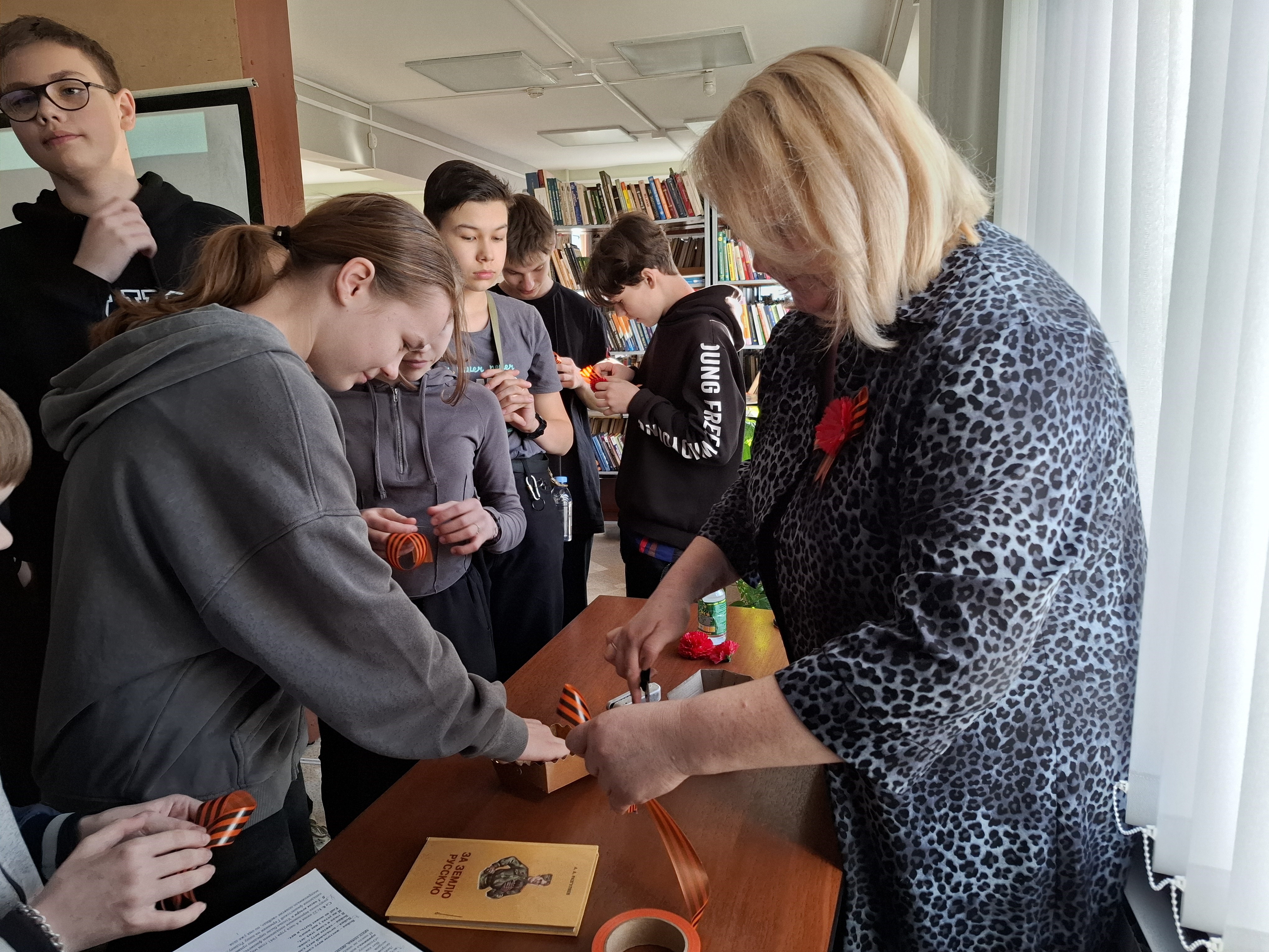 В начале акции участники узнали историю Георгиевской ленты, после чего прошел мастер-класс «Символ Победы», на котором показали технологию ее изготовления. Каждый смог сделать себе на память Георгиевскую ленту.