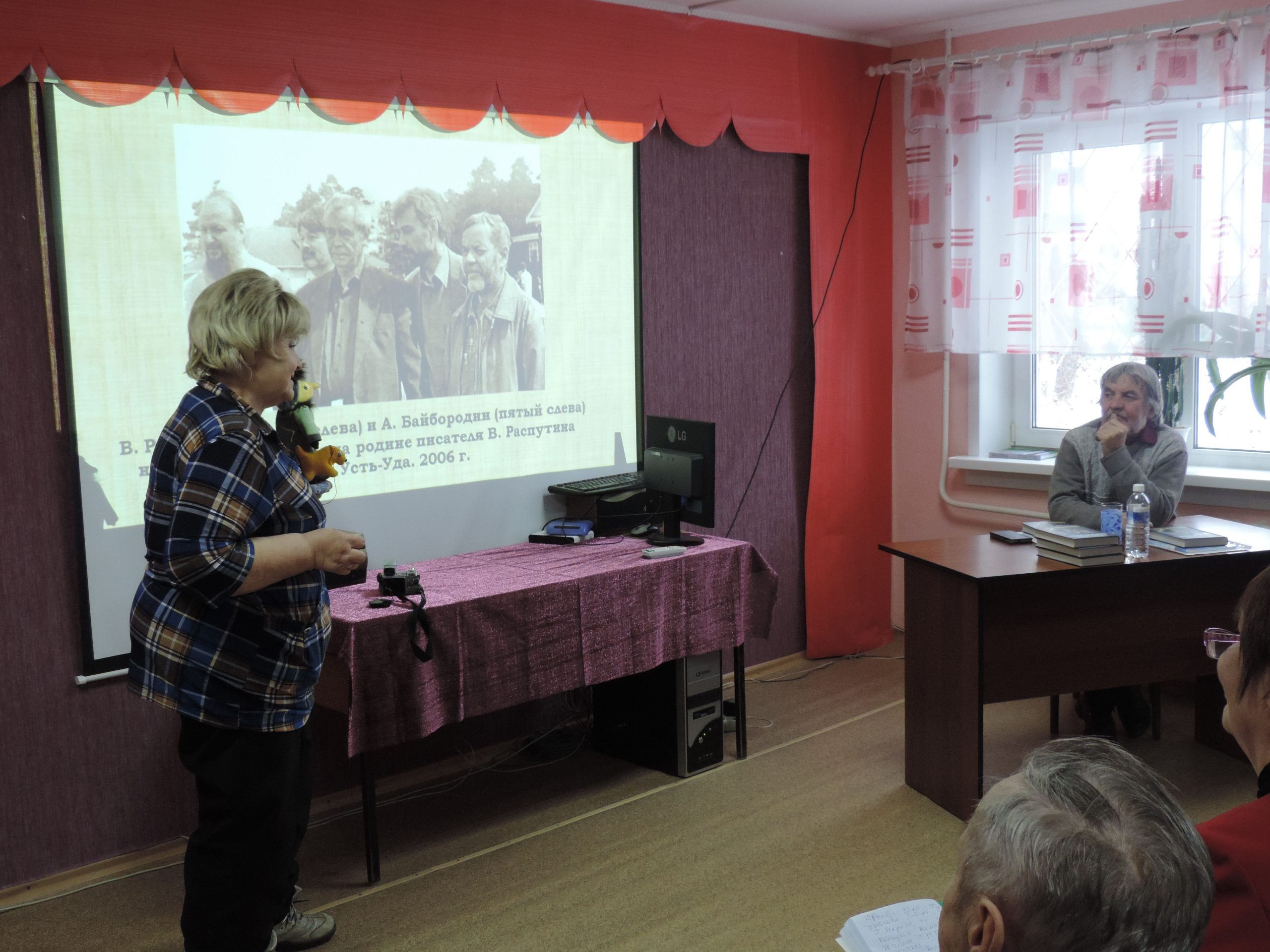 11 февраля для нашей библиотеки был удивительный и счастливый день У нас в гостях побывал российский прозаик, детский писатель, литератор, член Союза писателей СССР (1986), член Союза писателей России, лауреат Всероссийских литературных премий «Литературная Россия» (1979), Союза писателей России «Традиция» (1995), Всероссийской премии «Отчий дом» имени братьев Киреевых (1999), Областной премии имени святителя Иннокентия Иркутского (1997), Всероссийского литературного конкурса имени В. Шукшина (1999), премии журнала «Сибирь» им. А. Зверева(2007), а также трижды лауреат премии Губернатора Иркутской области (2002,2011.2014), лауреат Национальной премии им. В.Г. Распутина (2018), главный редактор журнала «Сибирь» — Анатолий Григорьевич Байбородин.