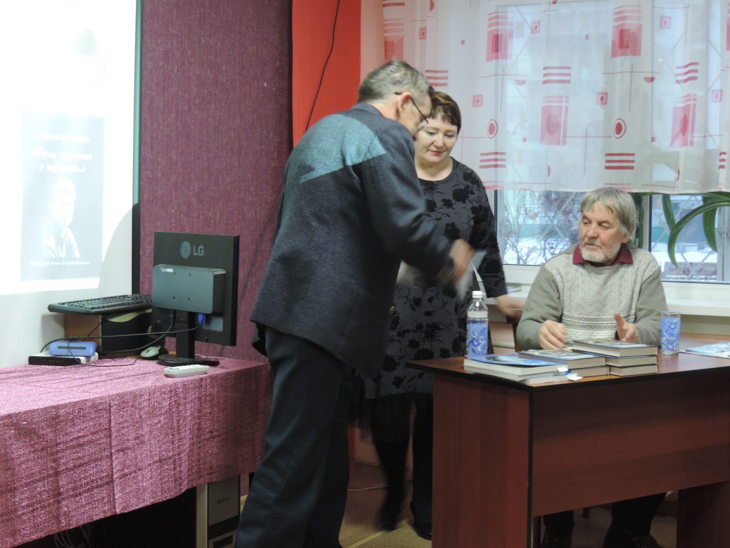В заключение встречи Анатолий Григорьевич подарил библиотеке новый журнал «Сибирь» и книгу «Деревенский бунт» со своим автографом. Со словами благодарности и пожеланиями творческого вдохновения мы вручили гостю книгу «Город, рожденный у соли», с автографом автора Сергея Васильевича Шаманского, а также, набор памятных открыток о курорте «Усолье», которые были предоставлены начальником отдела культуры управления по социально-культурным вопросам администрации города Ю. Ожогиной.