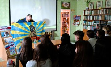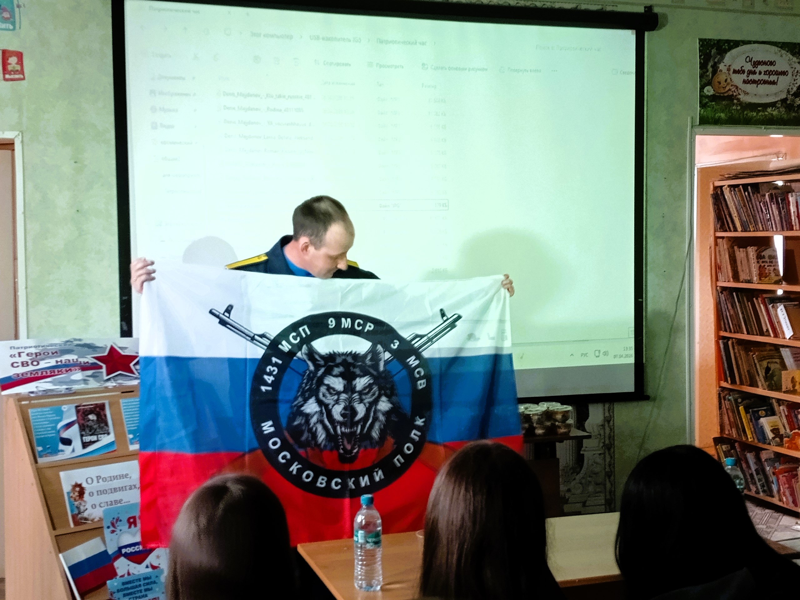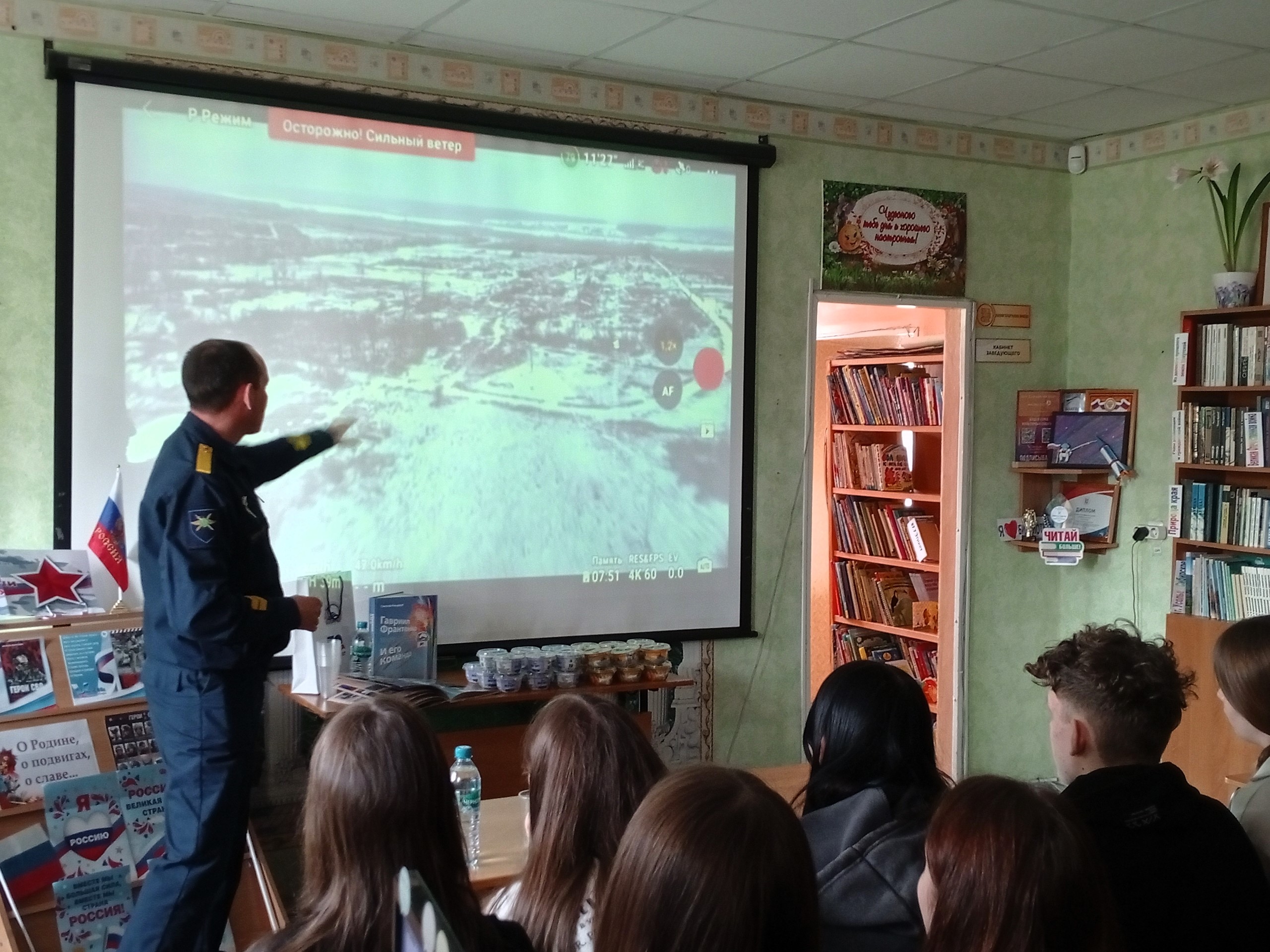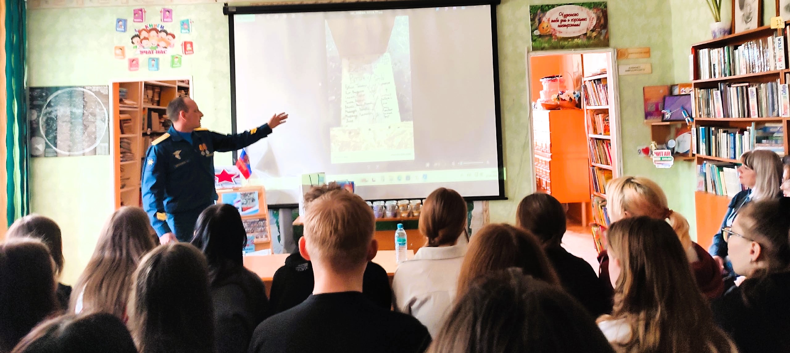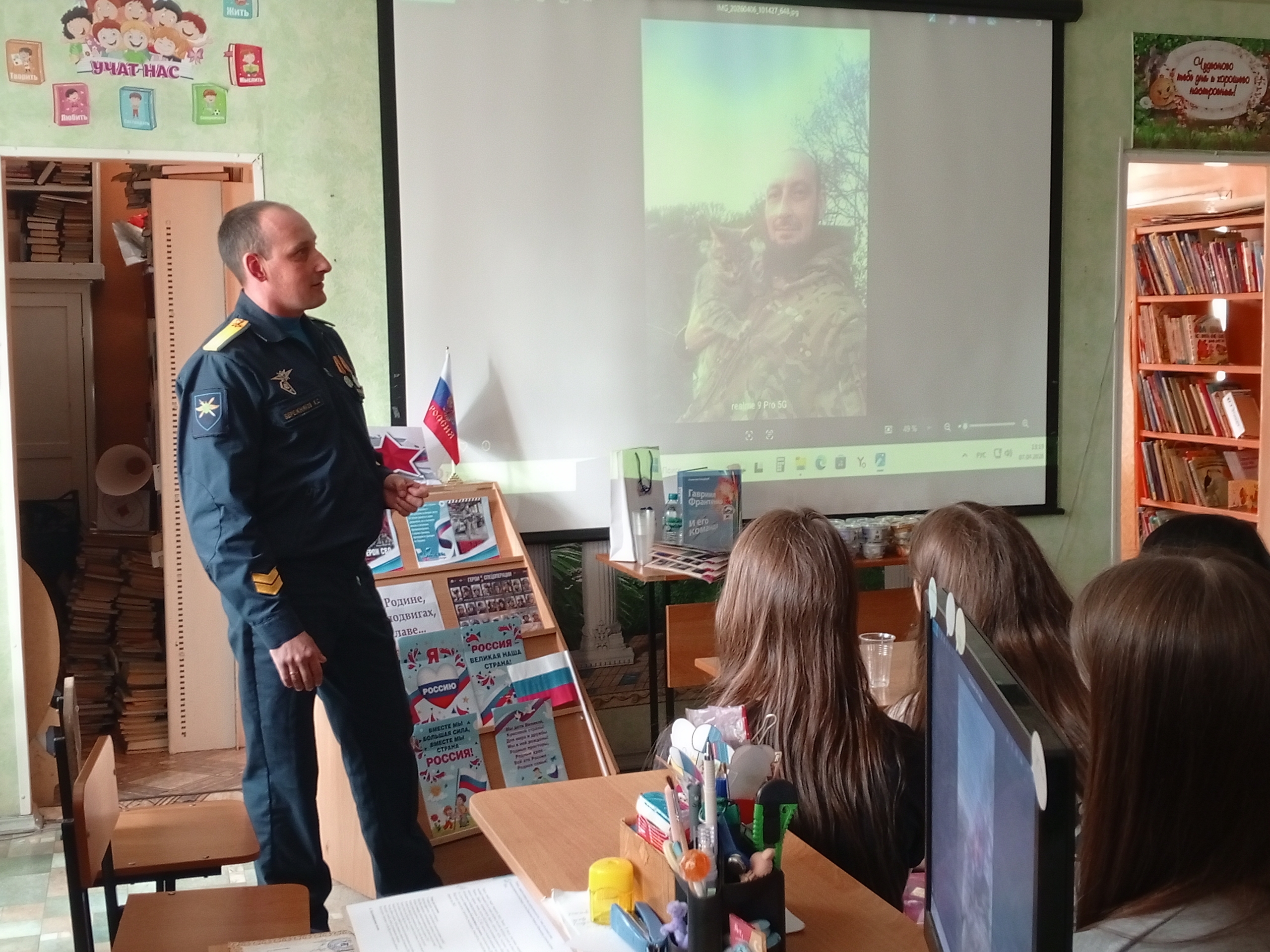 В целях военно‑патриотического воспитания подрастающего поколения детская библиотека-филиал №7 организовала встречу с участником СВО — Константином Сергеевичем Бережняковым, заместителем командира взвода, нашим земляком.