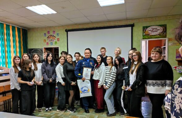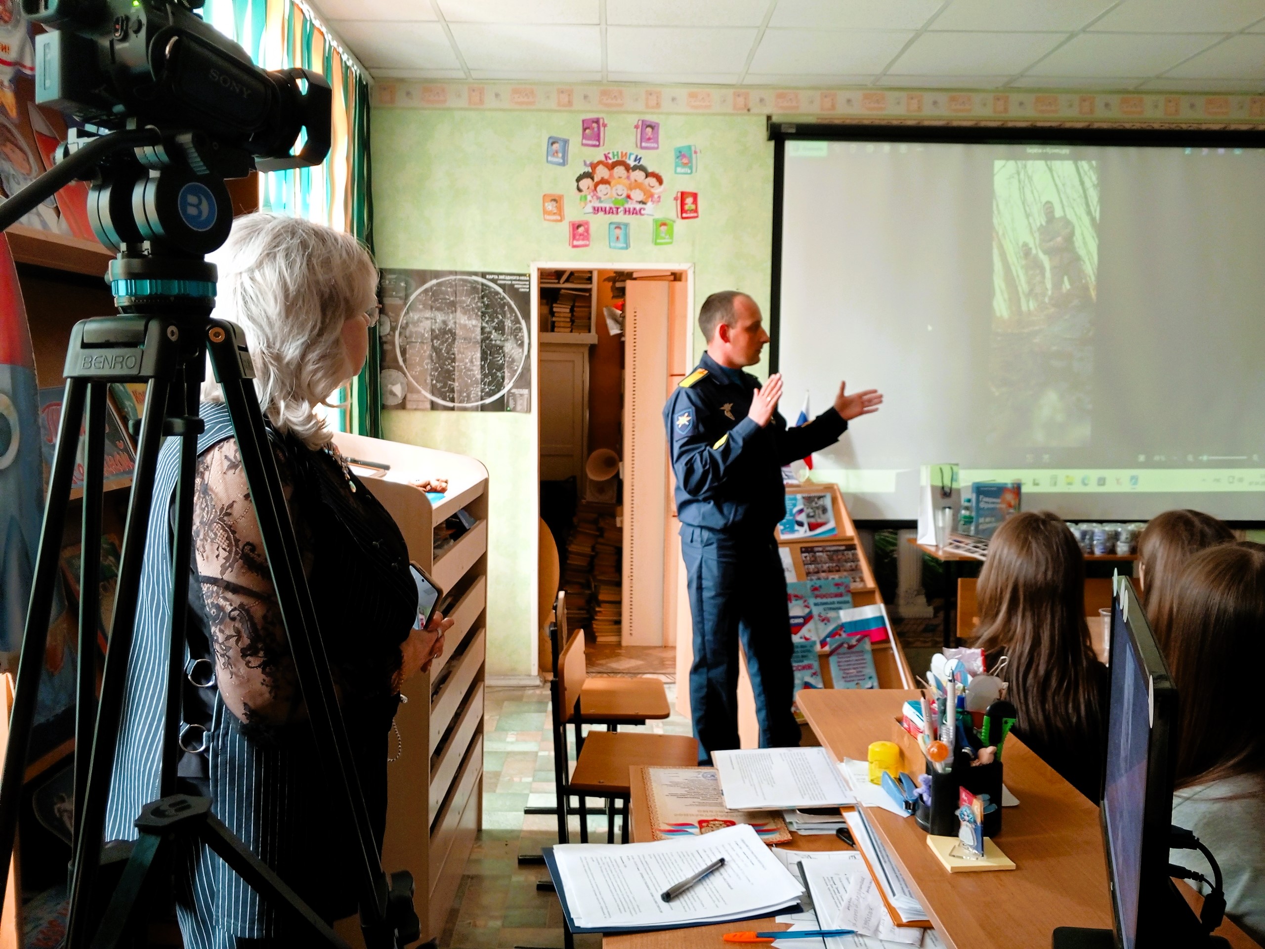 Школьники слушали гостя с большим интересом и задавали серьёзные вопросы. В разговоре была затронута и тема помощи нашим солдатам, которая приходит из тыла.