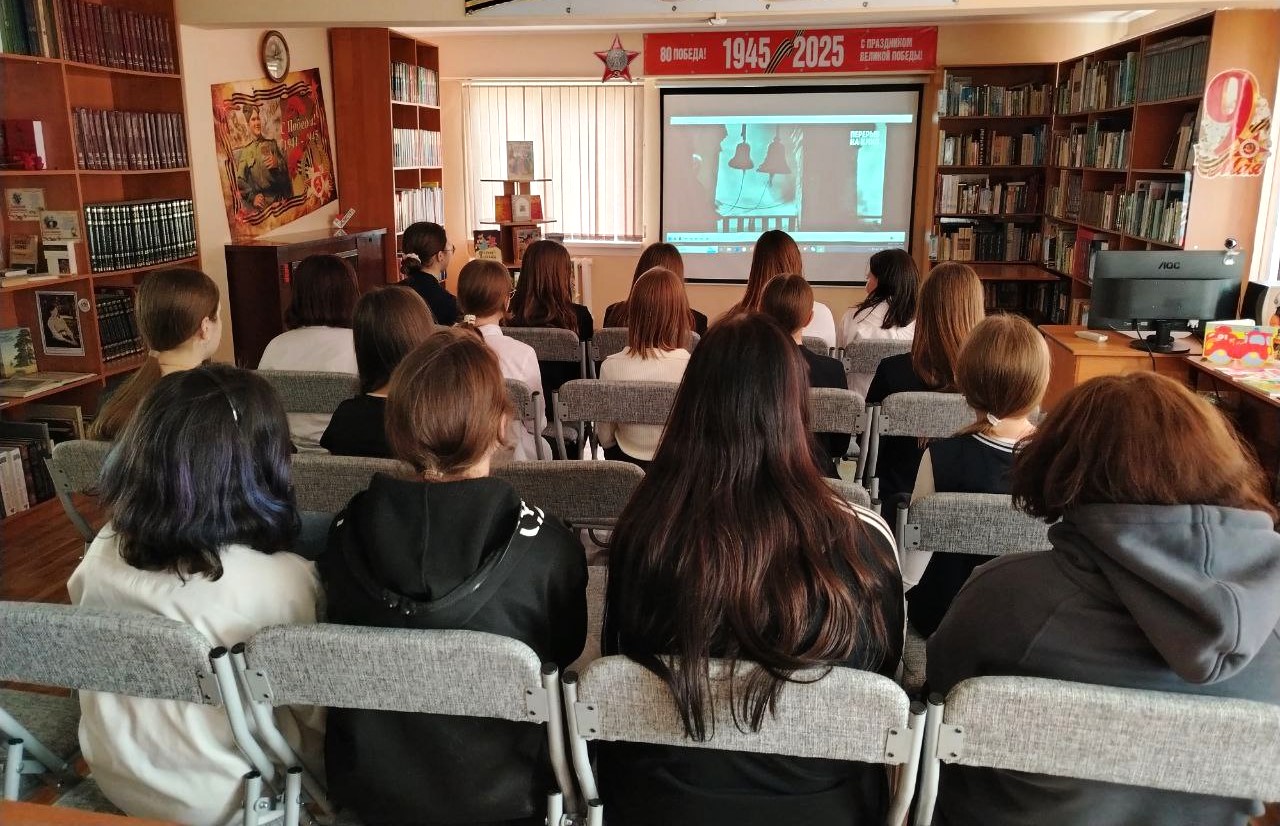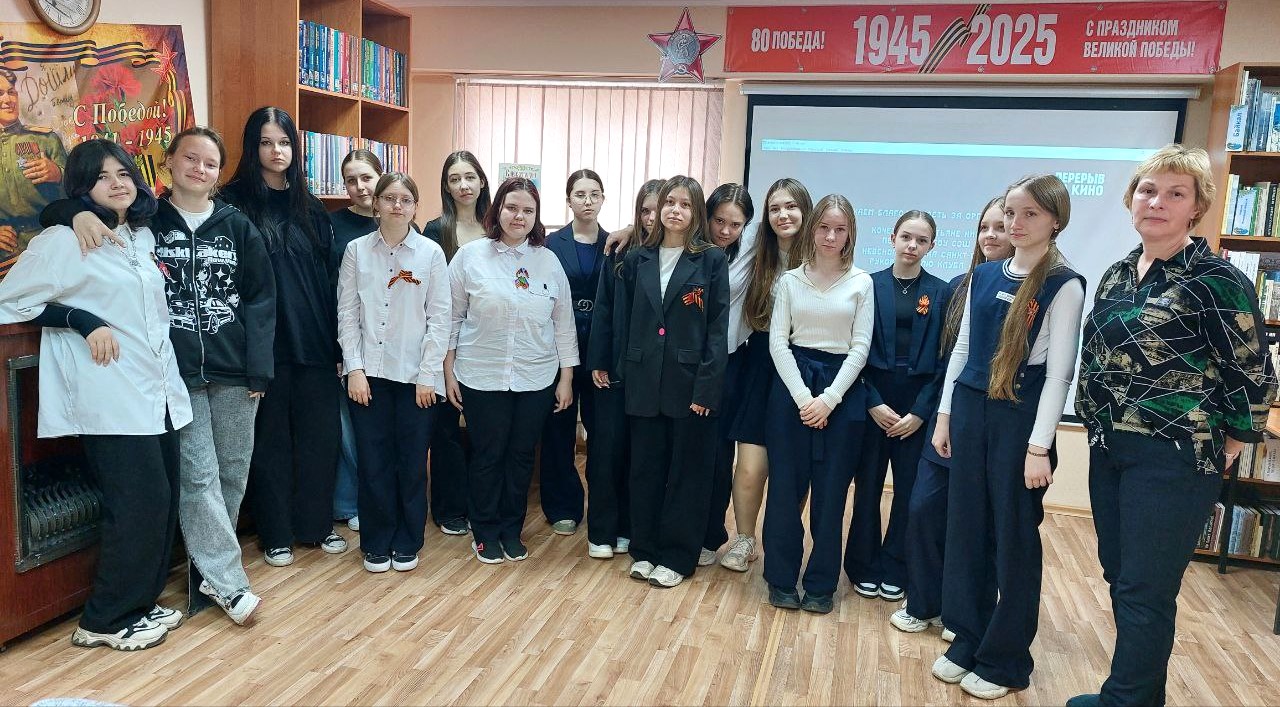 Библиотека-филиал № 6 присоединилась к этой масштабной киноакции. Восьмиклассники школы № 12 г. Усолье-Сибирское увидели 45-минутную программу, в которую вошли: видеостихотворение «Опалённый цветок», два инфографических ролика от проекта «Минуты Победы», три медиаработы из киноальманаха «Без срока давности: Непокорённые», а также два документальных фильма «Я до сих пор ненавижу полосатую форму» и «Дневник памяти. Владимир Дудров» об участниках Великой Отечественной войны и непосредственных свидетелях оккупации — малолетних узниках лагерей Евгении Ивановне Макаренко и Владимире Дмитриевиче Дудрове.