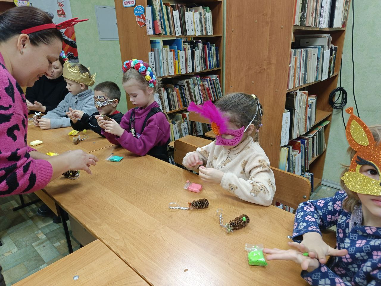 В творческой части мероприятия мастер‑костюмер ДК «Мир» Оксана Александровна Волкова показала ребятам, как создать елочную игрушку своими руками. Дети с удовольствием выполняли задание — каждый пытался по‑своему воссоздать образ новогоднего украшения. Работы получились креативные и разнообразные.