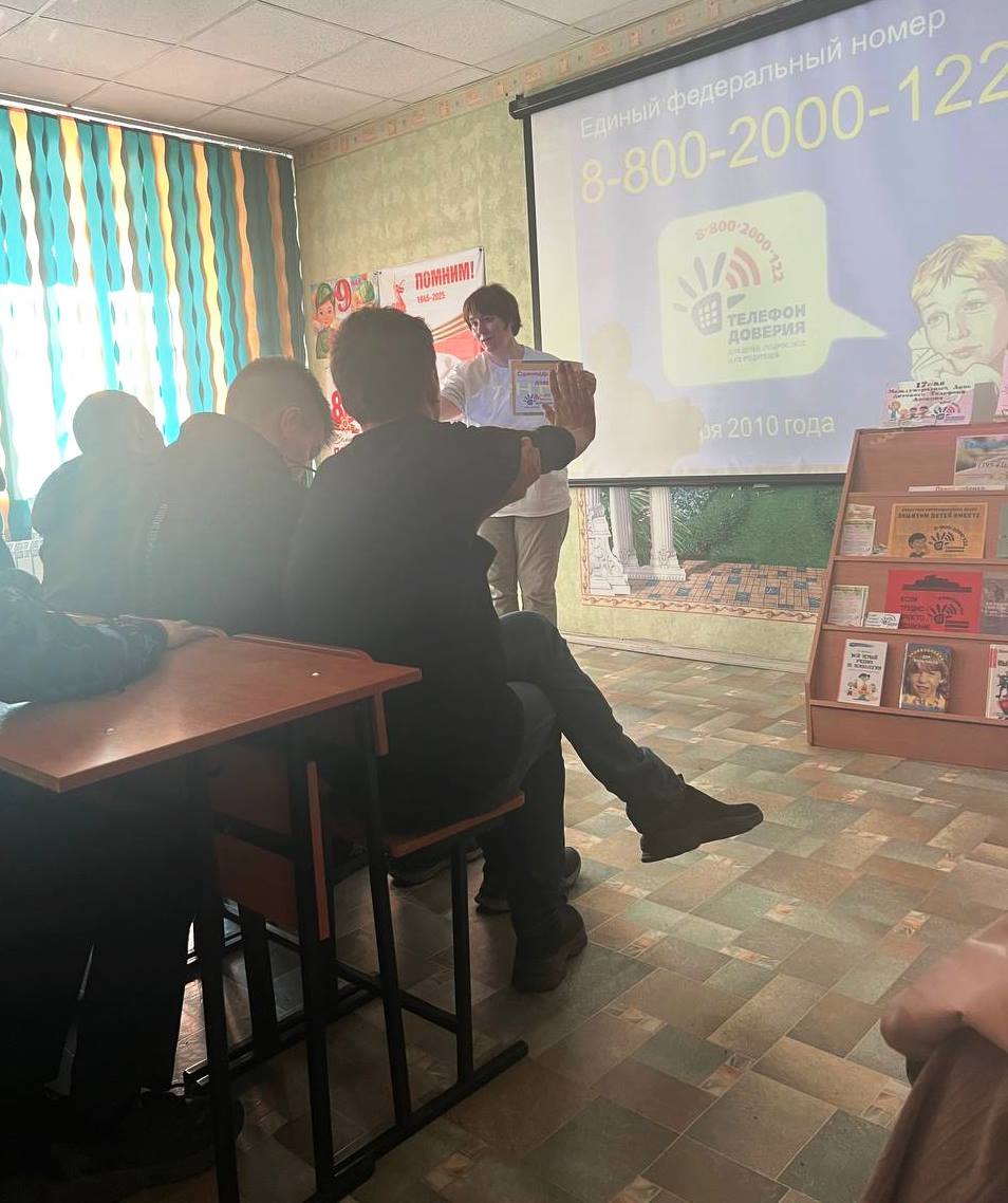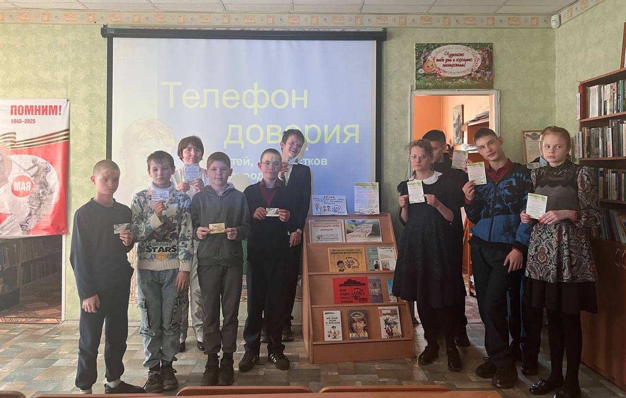 Библиотекарь рассказала школьникам о том, что 17 мая отмечается Международный день детского телефона доверия, и объяснила, как телефон доверия может помочь в сложных ситуациях. Также вручила ребятам буклеты с номером единого общероссийского телефона доверия.