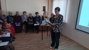 На презентации была представлена подробно каждая глава книги: «Русский обычай», Великий сын России» — о Муравьеве-Амурском, «Правда Василия Шукшина», «Душа грустит о небесах» о С. Есенине, «Творение русского духа» -о трилогии В. Личутина «Раскол», также были представлены очерки, посвященные М. Трофимову, А. Горбунову, В. Белову, В. Крупину, О. Платонову, В. Ганичеву, А. Щербакову, известной журналистке Н. Колобовой. Обучающиеся МБОУ «СОШ №12» прочитали отрывки из книги «О величии крестьянской цивилизации», «Сказочный Иванушка дурачок-предтеча святых юродивых», а обучающийся МБОУ «СОШ №13» Скрипов Сергей познакомил присутствующих с очерком о генерал-губернаторе Муравье-Амурском. Ансамбль городского дома совета ветеранов «Рябинушка» под руководством Владимира Полковникова исполнили песни на стихи С. Есенина, песню из кинофильма В. Шукшина «Калина красная», а также исполнили песню на стихи иеромонаха Романа Матюшина, музыку к которым сочинил сам В. Полковников. Очень интересно А. Байбородин рассказал о поэтах М .Трофимове и А. Горбунове, а участники городского литературного объединения прочитали их стихи. Встреча прошла интересно, насыщенно, после презентации многие еще общались с автором, приобретали книгу «Слово о роде и народе».