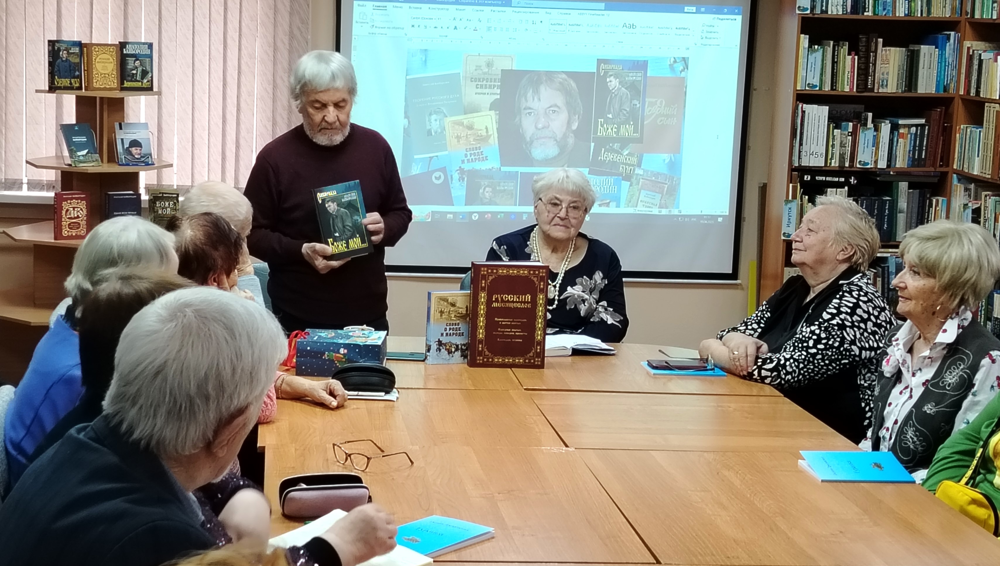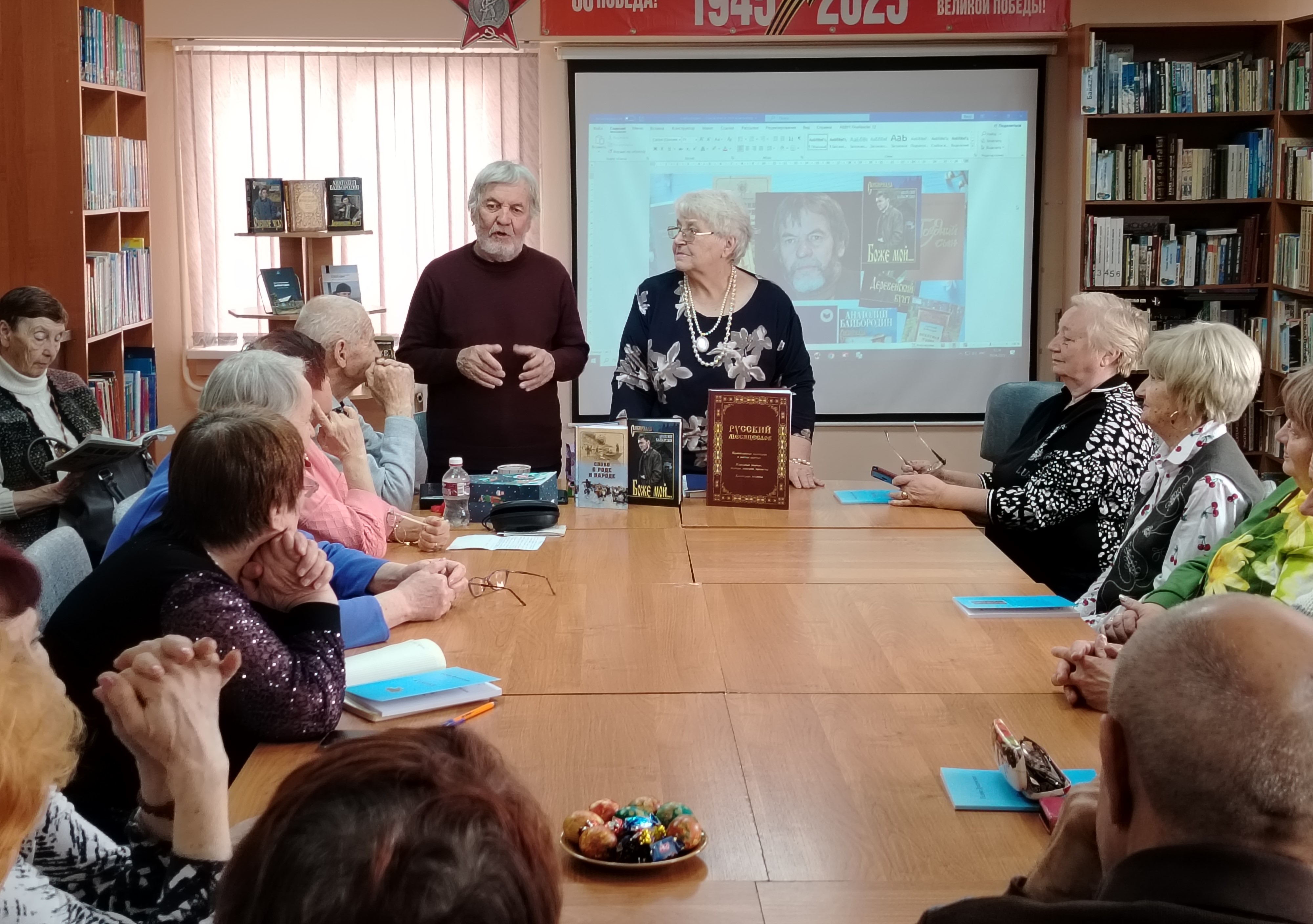 19 апреля в библиотеке-филиале № 6 состоялась творческая встреча участников литературно-музыкального клуба «Горящий камин» с российским прозаиком, детским писателем, редактором, членом Союза писателей СССР (1986), членом Союза писателей России, лауреатом Всероссийского литературного конкурса имени Шукшина (1999), лауреатом Большой литературной премии России (2007) и премии имени В. Г. Распутина (2018) Анатолием Григорьевичем Байбородиным.