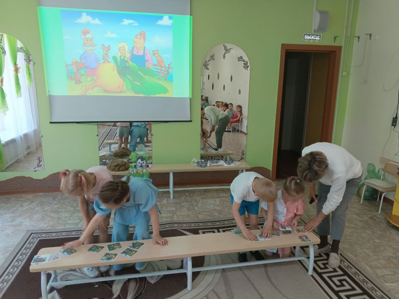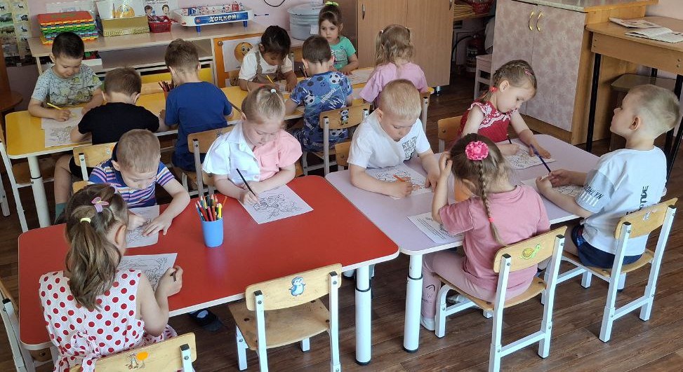 Юные читатели отправились в увлекательное путешествие на паровозике, где им пришлось пройти разные испытания. Сначала они «приехали» на полянку и поиграли в игру «Перевертыши». Затем отгадывали сказки по предметам, угадывали героев и собирали последовательность сюжетов. В конце занятия каждая группа получила раскраски, где ребята проявили свою фантазию и объединили сказки в общий альбом.
