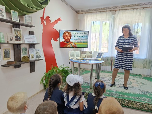 В центральной детской библиотеке прошел урок истории, на котором дети познакомились с биографией Александра Невского. Узнали, с какого возраста начал княжить юный Александр, за что получил прозвище «Невский». Ребята отгадывали спрятанные слова в шараде, быстро отгадав фразу «Не в силе Бог, но в правде!». В завершении встречи будущие защитники получили напутствие: «Любите землю свою как мать», а мы, её дети, будем оберегать её от бед.