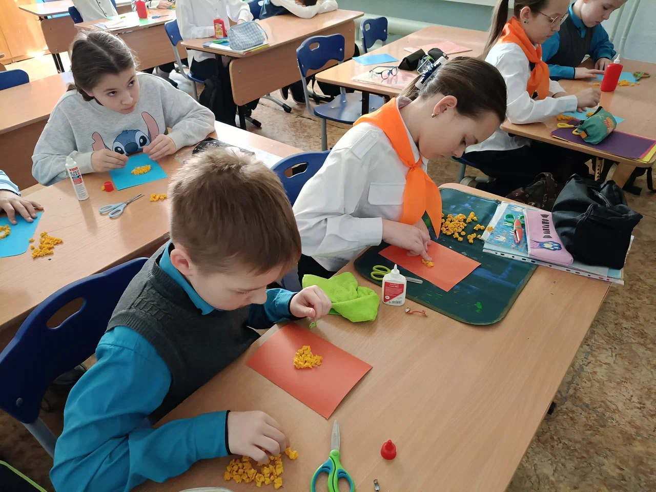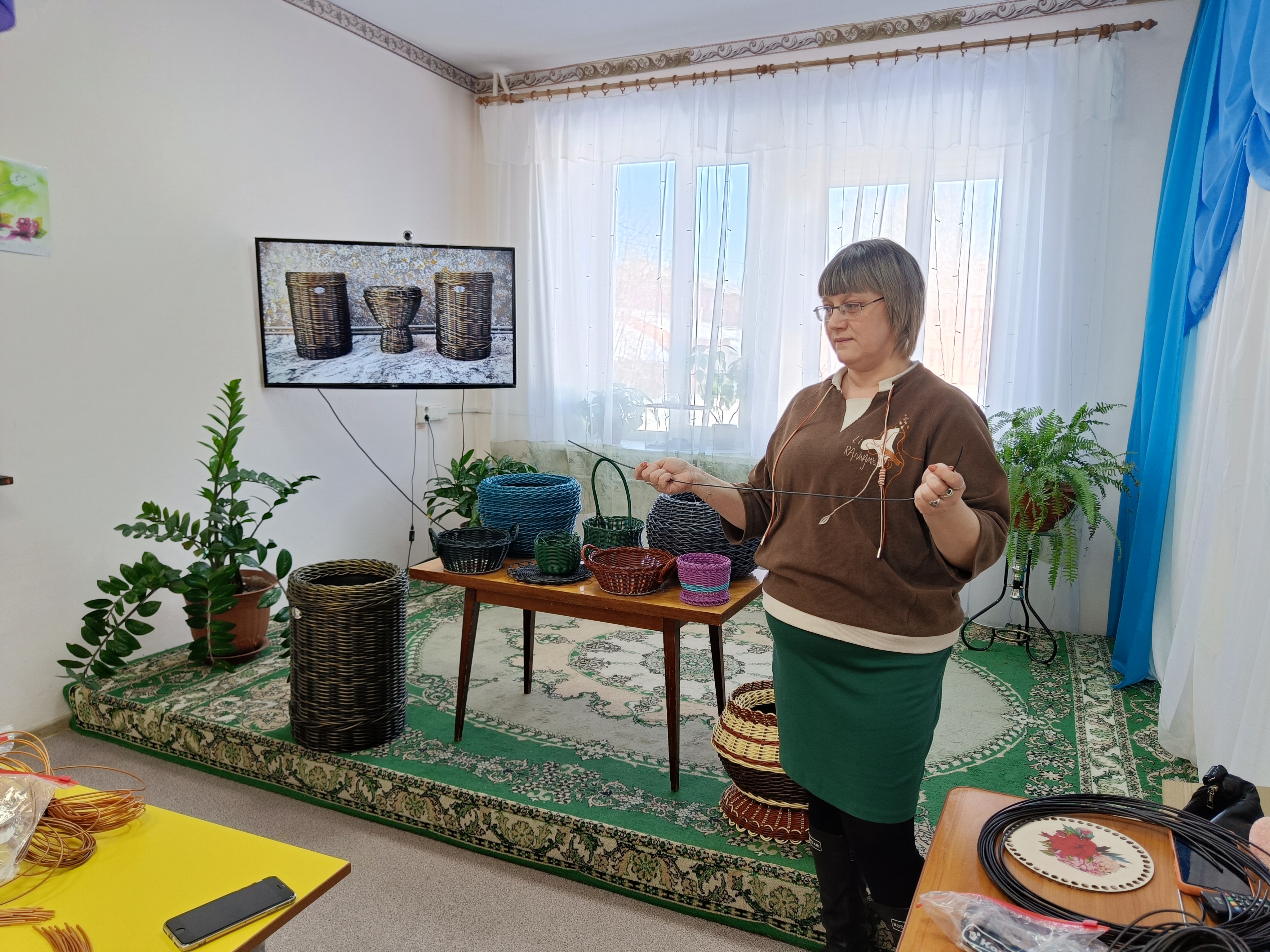 Учащиеся младших классов и дошкольники приготовили открытку‑мимозу для мамы. Ученики 5‑го класса создали аппликации‑корзинки с тюльпанами. А для более взрослых ребят провели мастер‑класс по созданию корзин из ротанга.