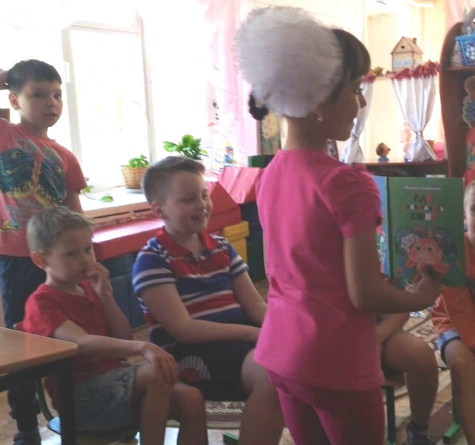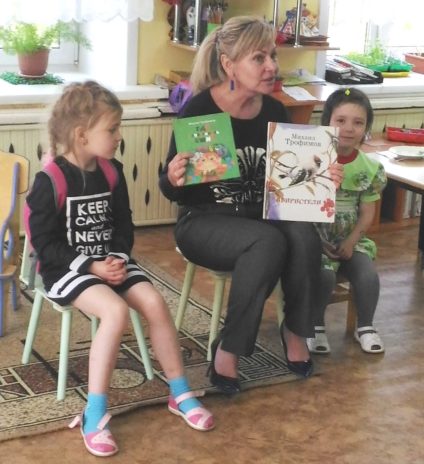 Данный вид литературной деятельности стал итоговым мероприятием, завершающим первое полугодие в рамках работы социального творческо-ролевого клуба «Дети радуги», для участников уроков внеклассного и смыслового чтения, руководителем которого является заведующий Алла Ковтоногова. Воспитанники средних, старших, подготовительных и коррекционной группы МБДОУ «Детский сад №25, 26, 35» познакомились с творчеством самобытного писателя, члена Союза писателей России, известного автора многих изданий для детей и взрослых Михаила Трофимова. Узнали о его преданной любви к животным, птицам, растениям, обитающим на территории Иркутской области.